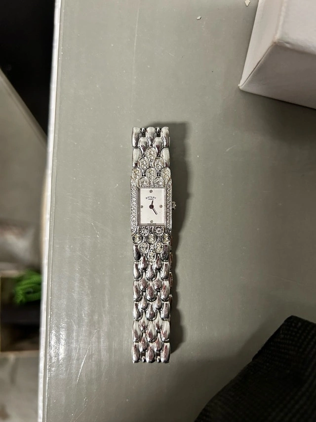 This sparkling eye-catching Rotary watch features a dazzling array of crystals, making it a standout accessory. This watch has been previously worn and is in amazing condition, ready to add a touch of sparkle to your style. It is in great working condition. Don't miss out on this gem! And remember, if the ad is up, it's still available! Please check out my other ads.