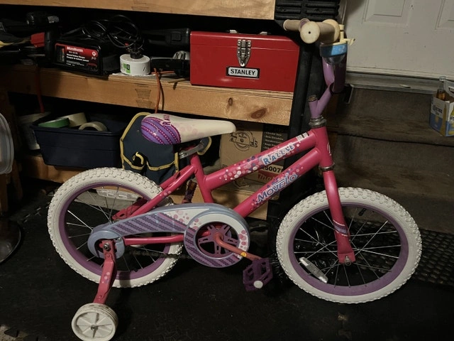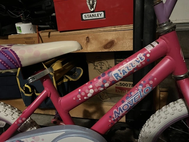 Get your little one rolling with this adorable Razzle Movelo bike, perfect for young riders! This used bike is in good condition and ready for new adventures. It features a sturdy frame, colourful design, and training wheels for added stability. The bike is ideal for children learning to ride and promises hours of fun. Please check out my other ads.