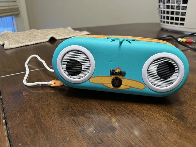 This Phineas & Ferb speaker is perfect for adding some fun to your audio experience. The speaker is in used-good condition, fully functional, and ready to bring your favorite tunes to life with a touch of animated charm. It requires an older phone or iPod with a headphone jack. It's ideal for kids' rooms, collectors, or anyone who loves the iconic Disney show! Whether you're reliving your childhood or introducing Phineas and Ferb to a new generation, this speaker is sure to be a hit!