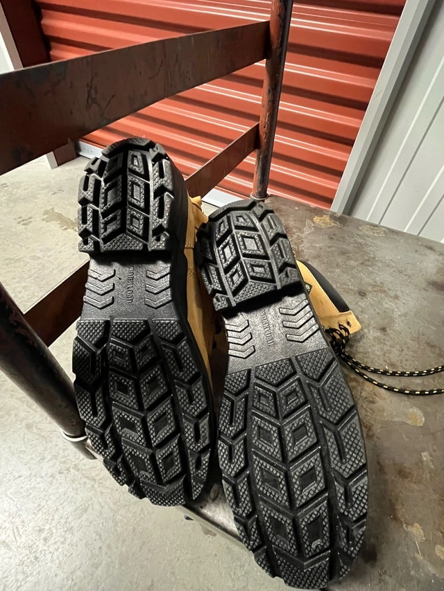 These are Workload Steel Toe Boots, offering reliable protection and durability for any demanding work environment, indicated as a size 12. Like new. The reinforced steel toe ensures safety, and the sturdy construction provides lasting comfort. Ideal for construction, manufacturing, or any job requiring robust footwear.