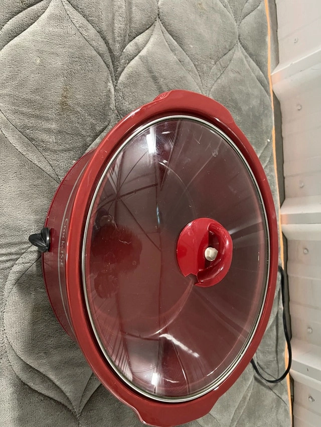 This is a Rival Crock-Pot slow cooker, perfect for stews, soups, and more. This crockpot has a red finish and a clear glass lid, letting you monitor your meal's progress with ease. Being pre-owned, it has served its purpose well and is still in good working condition, ready to deliver many more delicious meals. Features: * Brand: Rival * Colour: Red * Lid: Glass * Settings: Low, High, Warm Looking to declutter my kitchen, so this reliable crockpot is looking for a new home. If the ad is up, it's still available!