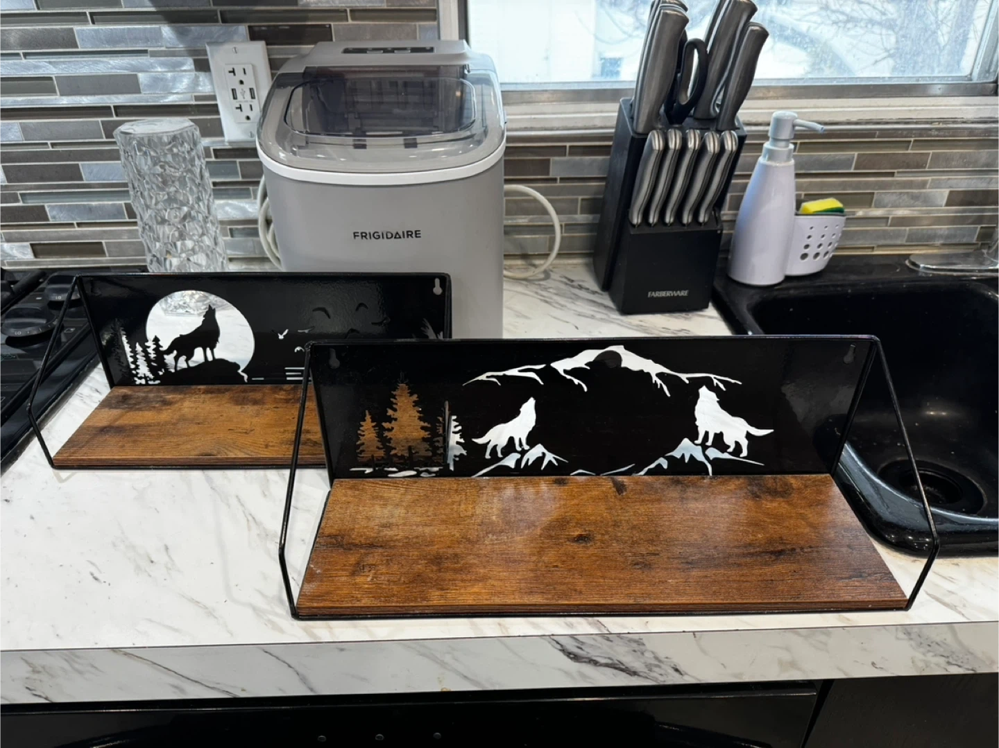 * Design: Laser-cut wildlife scenes (bears, wolves)