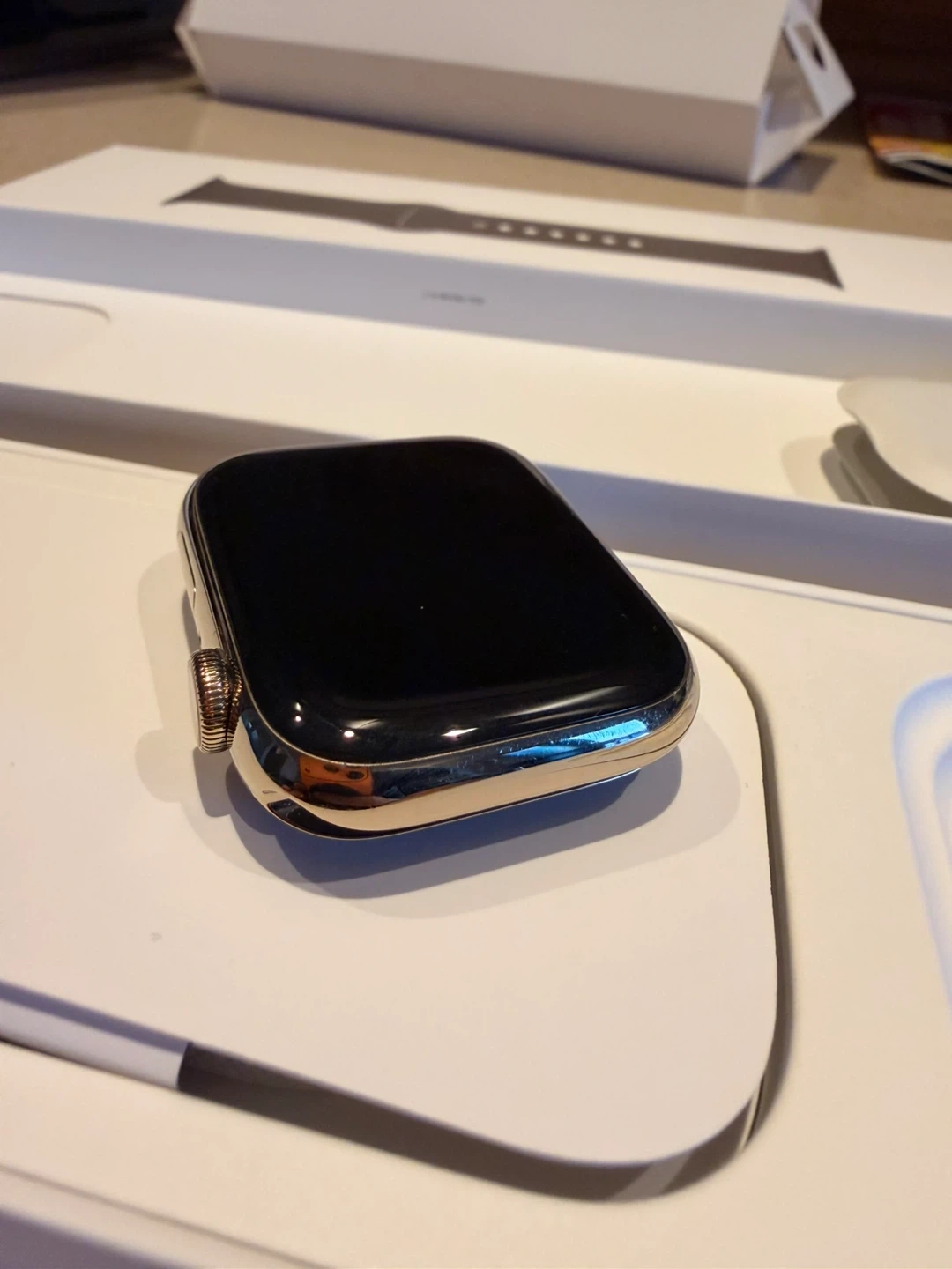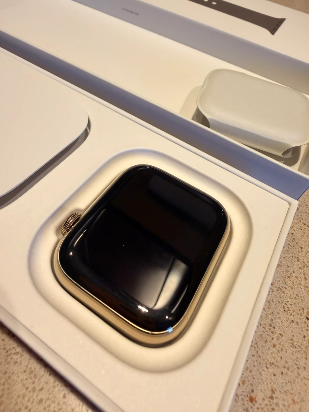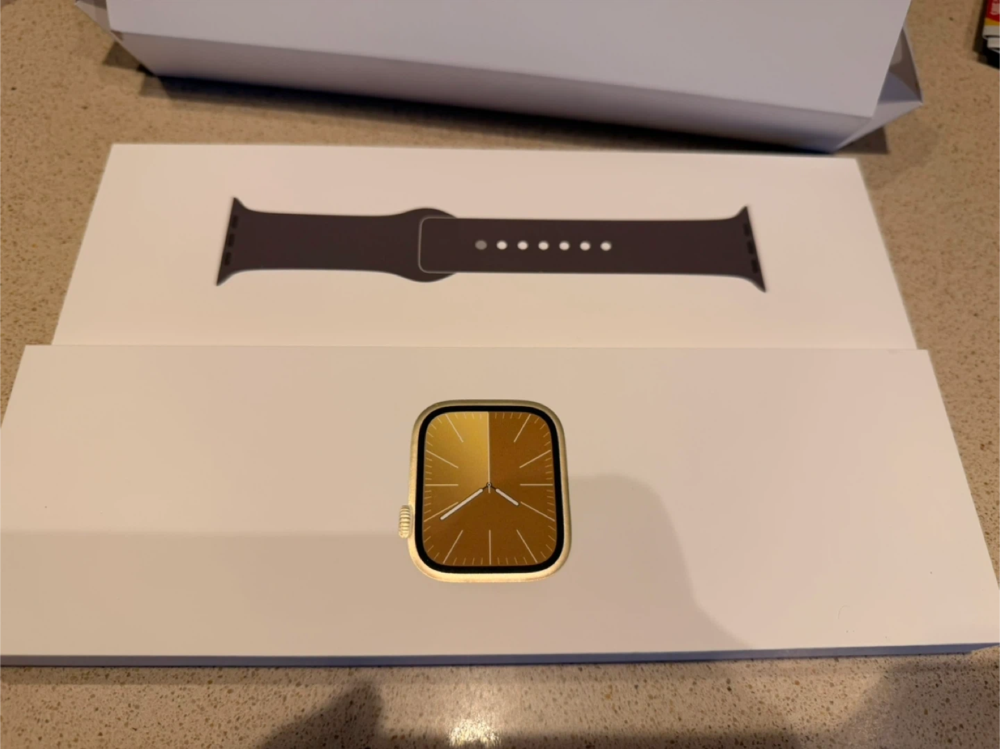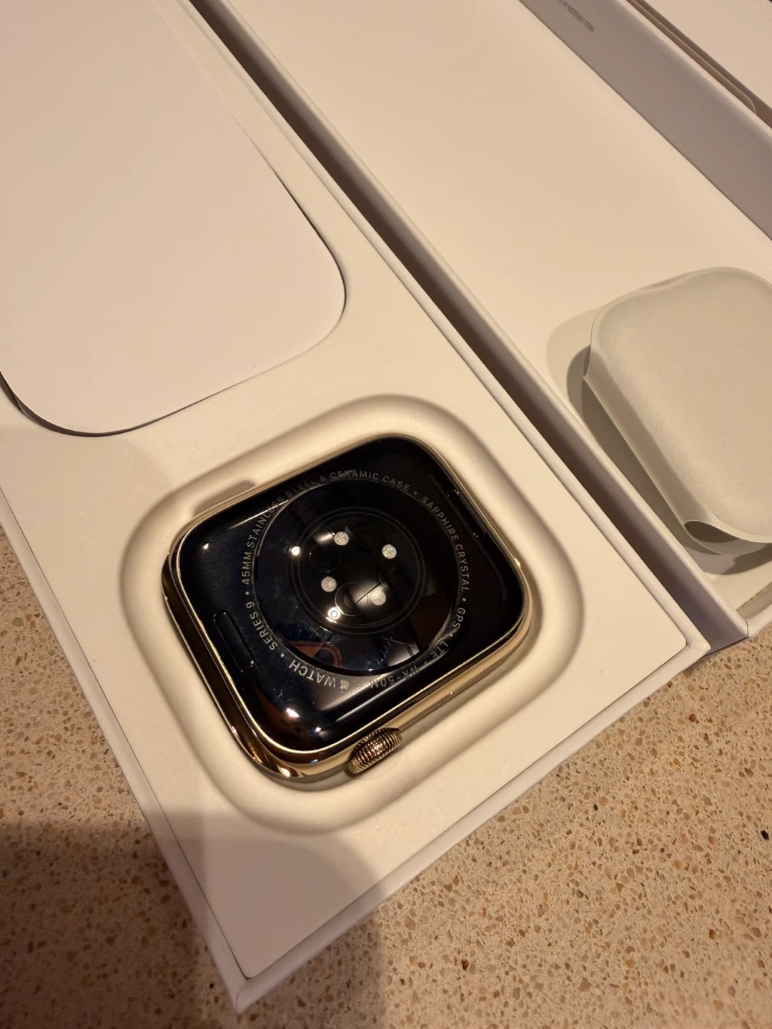 Apple Watch Series 9 (GPS + Cellular) 45mm Gold Stainless Steel Case with Clay Sport Band