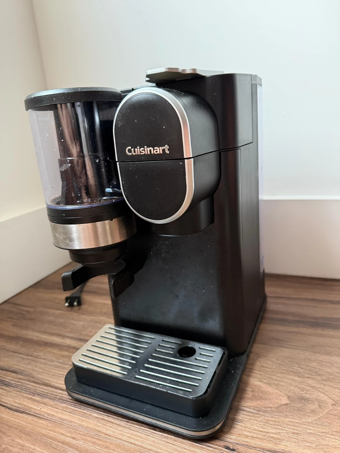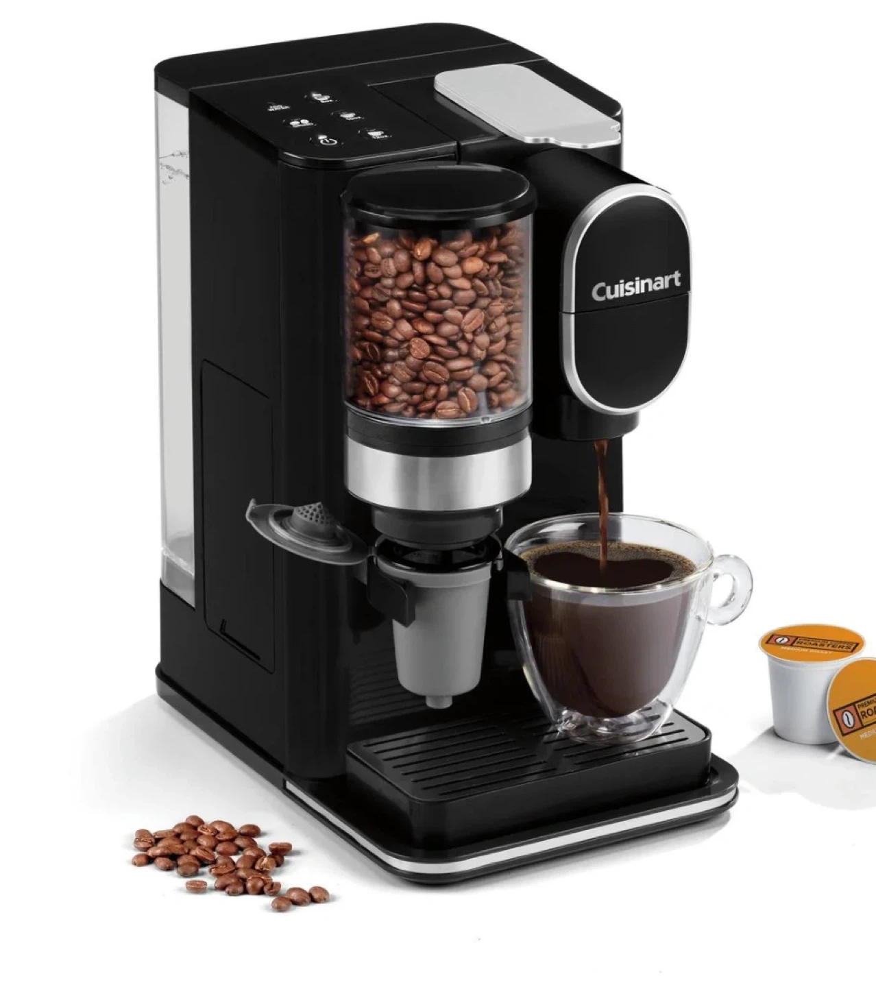 Cuisinart Grind & Brew Classic Black Single Serve Coffee Makers bring fresh-ground flavor and everyday convenience to your morning routine. With 3-in-1 flexibility, this compact coffee brewer functions as both a K Cup machine and a ground coffee machine—grinding whole beans, accepting pre-ground coffee, or brewing with your favorite single-use pod. The built-in conical burr grinder ensures a consistent grind for optimal taste, and the 100g hopper with a sealed lid helps keep beans fresh. Grounds feed directly into the included HomeBarista Reusable Filter Cup, giving you the option to skip pods altogether. Choose from three cup sizes using simple push-button controls, and remove the drip tray to fit your travel mug on the go. With a charcoal water filter, removable 48 oz reservoir, and easy-clean parts, it’s everything you need for a better brew, one cup at a time.