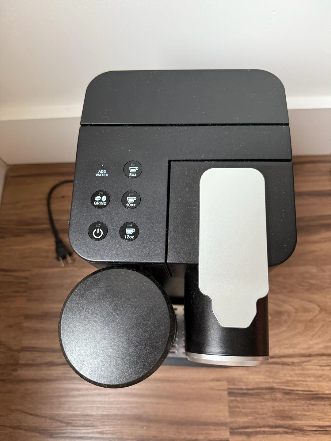 • The built-in conical burr grinder delivers uniform grounds for a fuller flavor, grinding directly into the reusable filter cup—hopper holds up to 100g and keeps beans fresh with a sealed lid