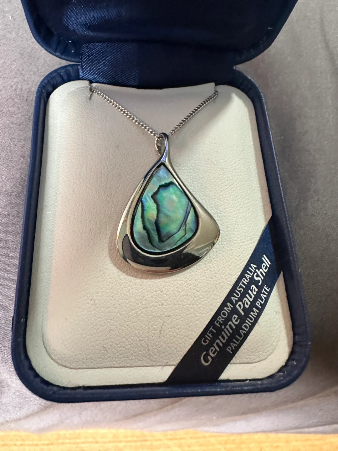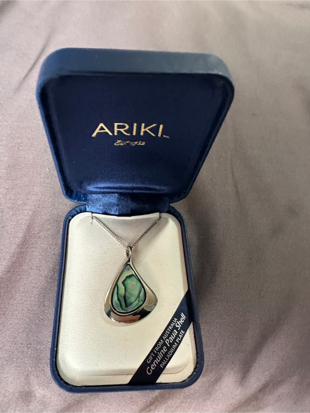 Selling an Ariki necklace featuring a genuine Paua shell with a palladium plate from Australia. This beautiful piece comes in its original box. Never worn.