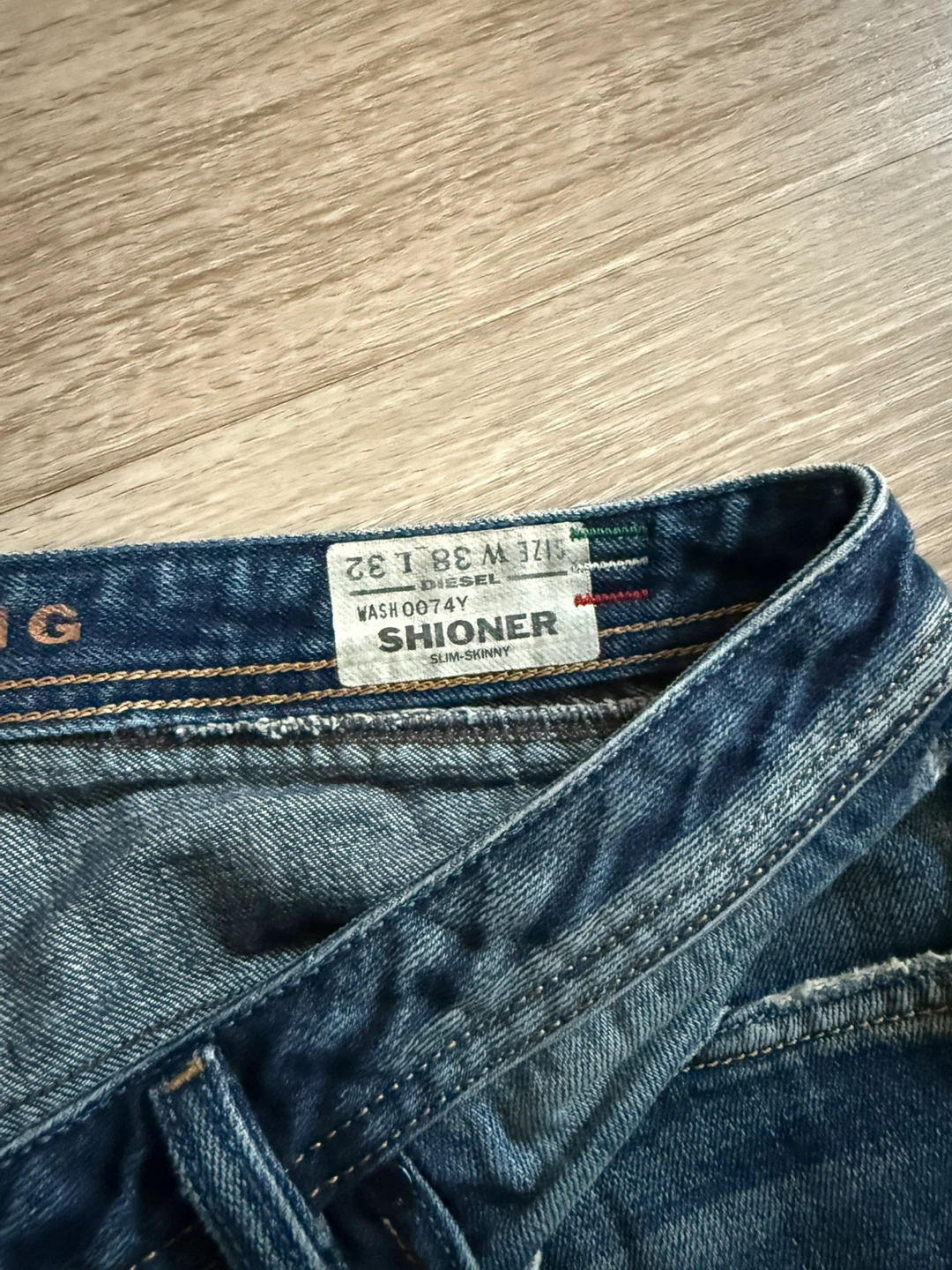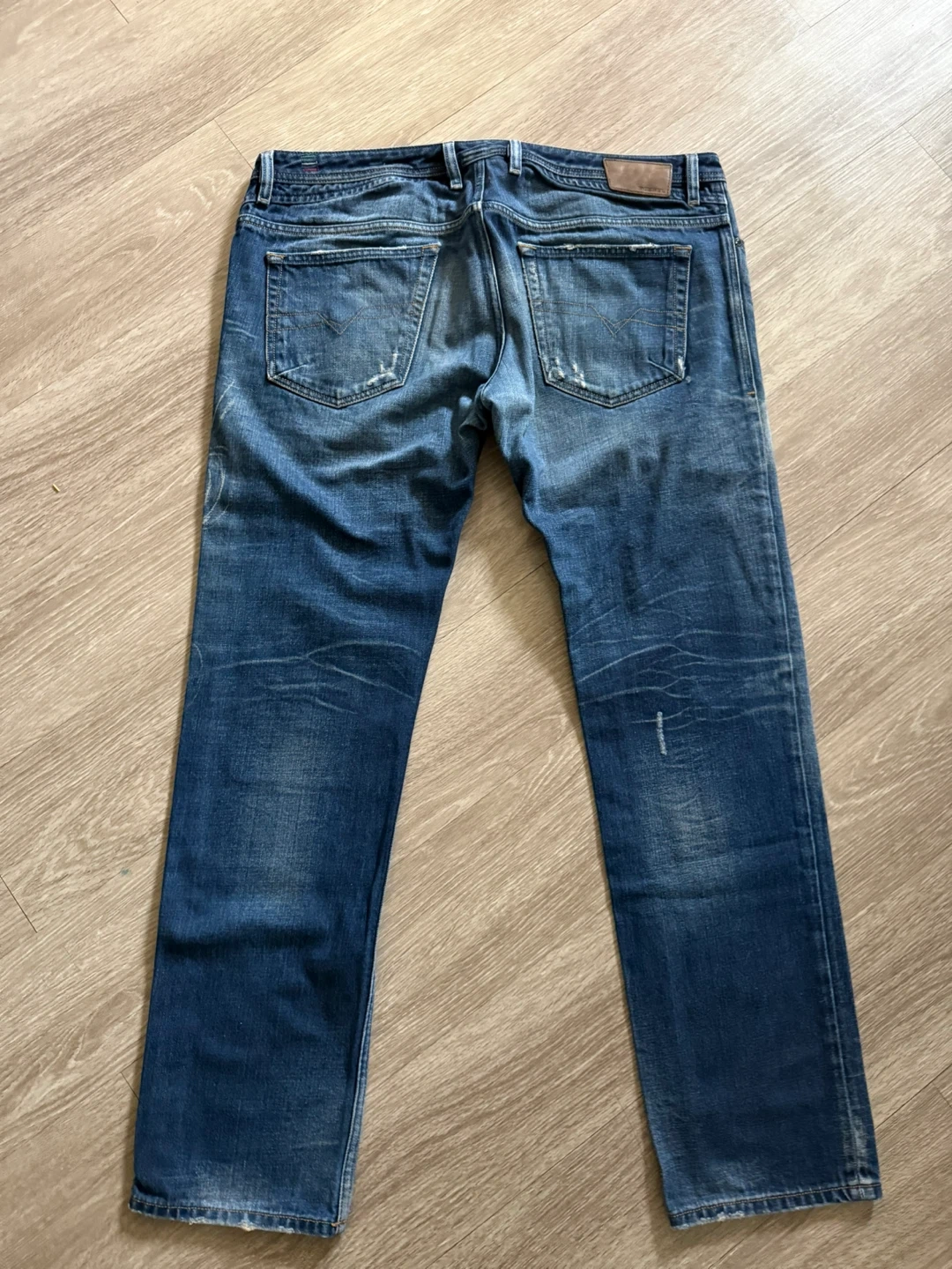 Diesel Shioner slim-skinny jeans in size W38 L32. These jeans have a distressed look with rips and fading throughout. Please see photos for condition details