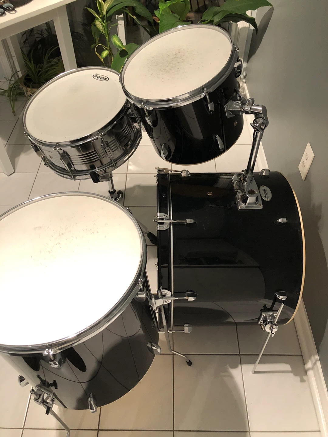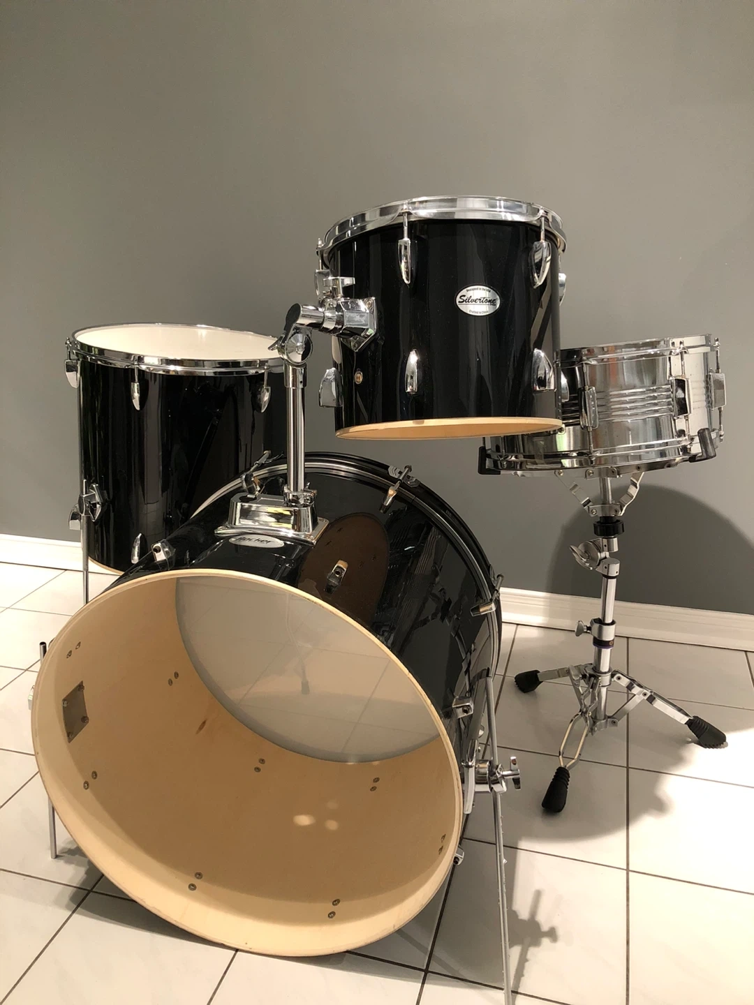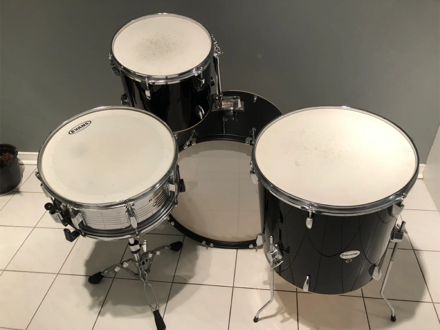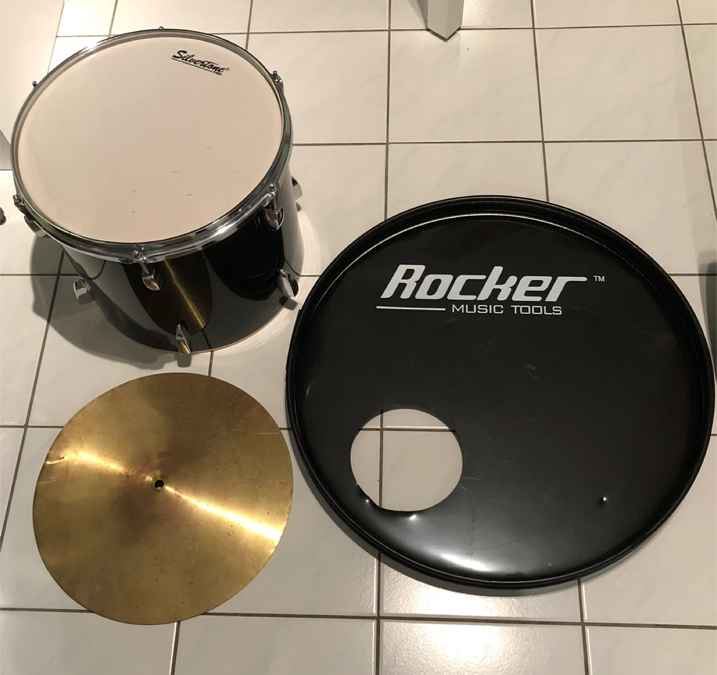*Also comes with additional 13” tom (without mount) — see photo 4 — crash cymbal, outer bass rim/reso head + lugs.