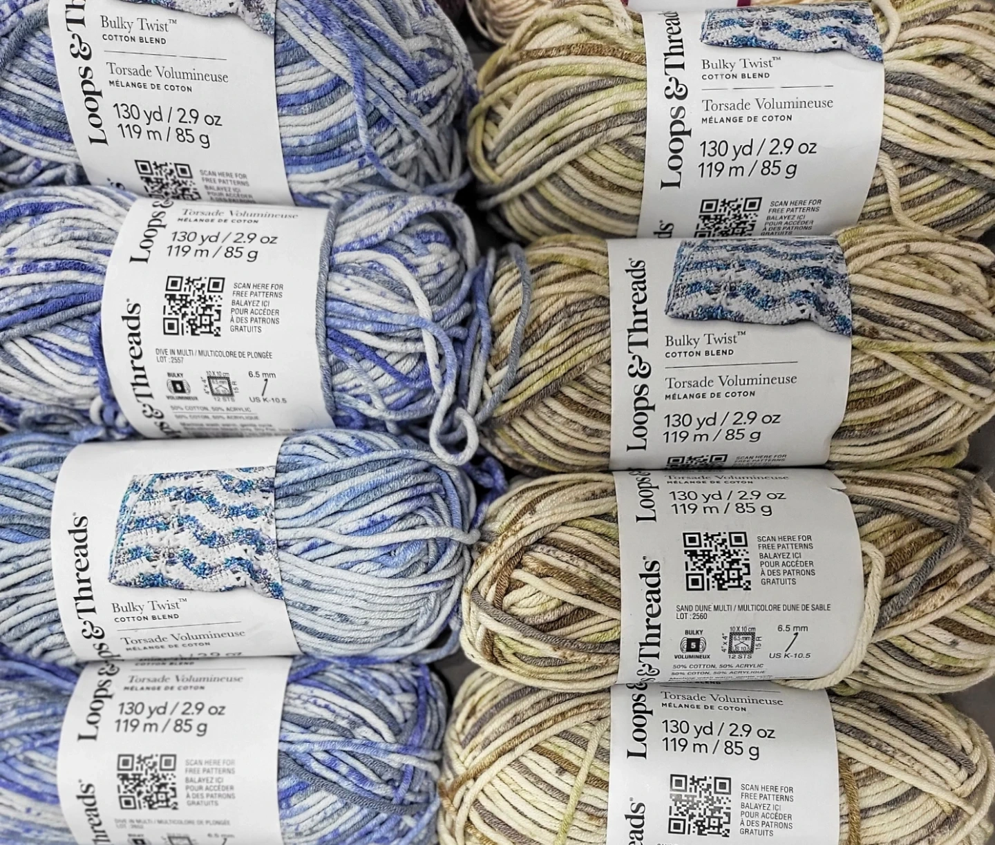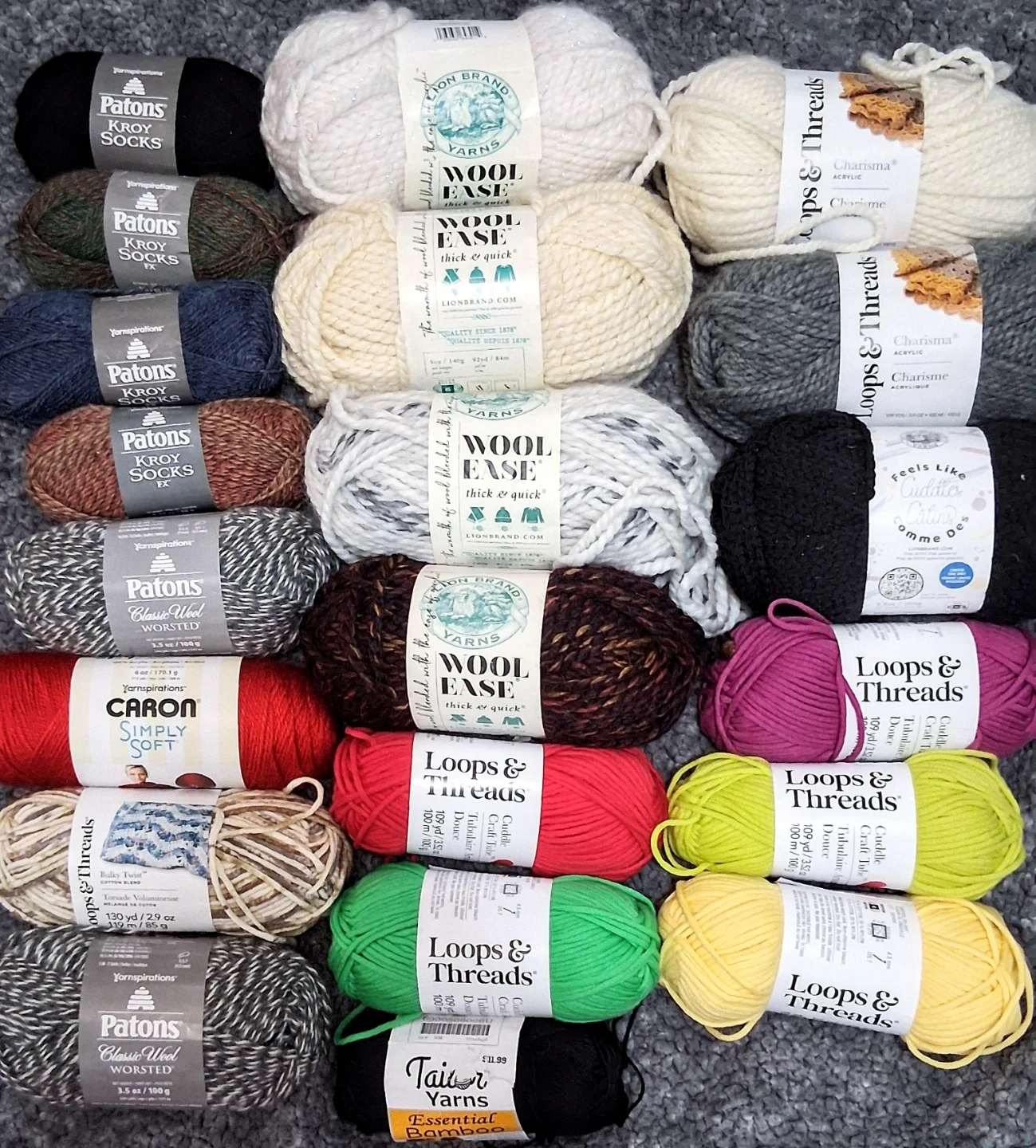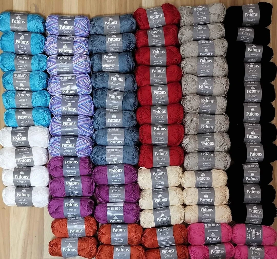 Selling a variety of yarn from different brands! There's Patons Grace, Loops & Threads Cuddle Craft Tube, and Caron Simply Soft. Great for all your knitting and crochet projects