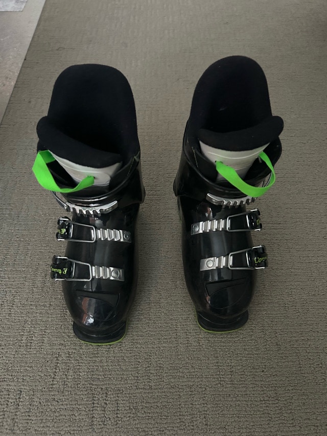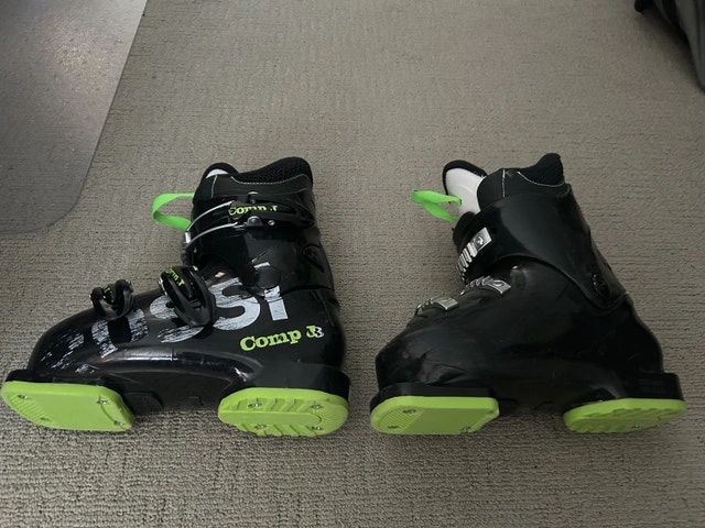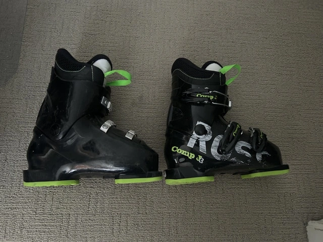 Get ready to shred the slopes with these Rossignol Comp J3 Ski Boots, perfect for young skiers looking to improve their skills! These boots are in great condition and offer a comfortable and supportive fit for all-day fun on the mountain. Here are some features: