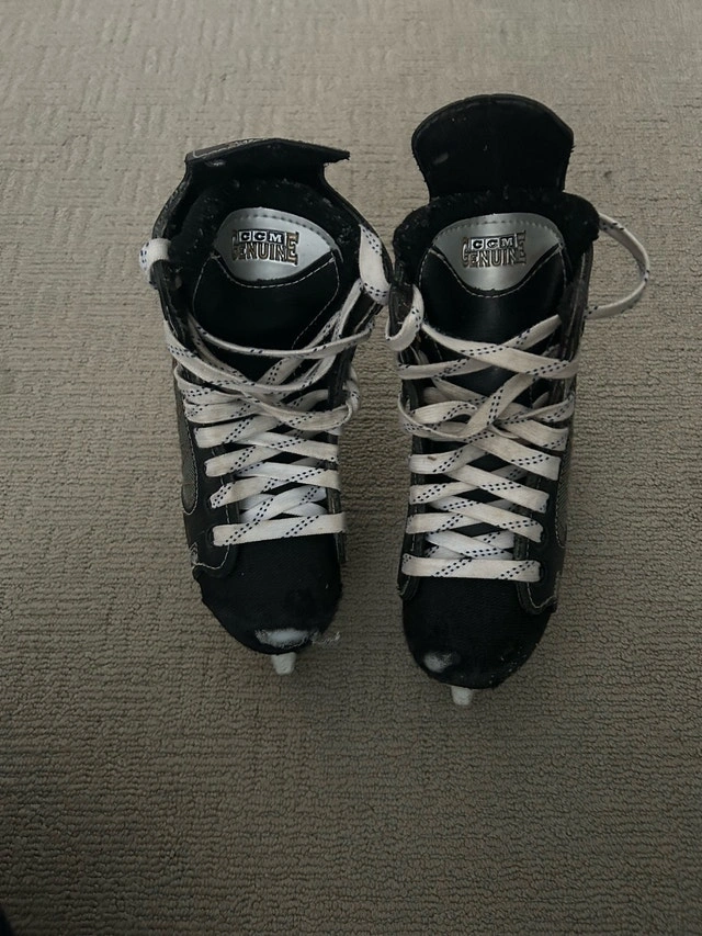 Don’t miss out on this pair of CCM performance profile hockey skates, perfect for young players starting their hockey journey. These skates are in fair condition, showing some signs of wear but still offer plenty of support and performance on the ice. If the ad is up, they're up for grabs! Remember to check out my other ads. Discount available for multiple purchases!
