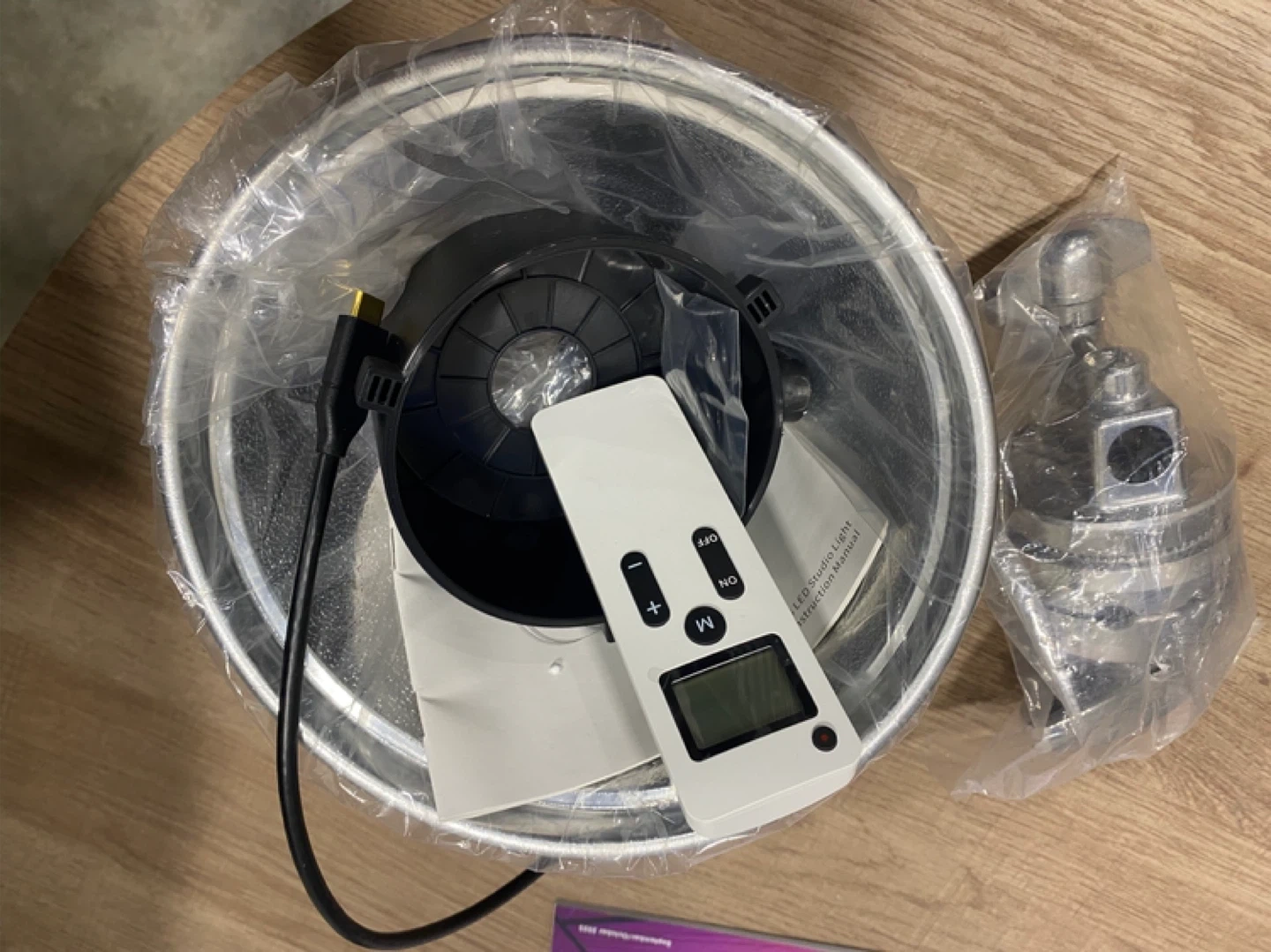 Powerful daylight LED light with clean, consistent output. Includes power cable and remote control.