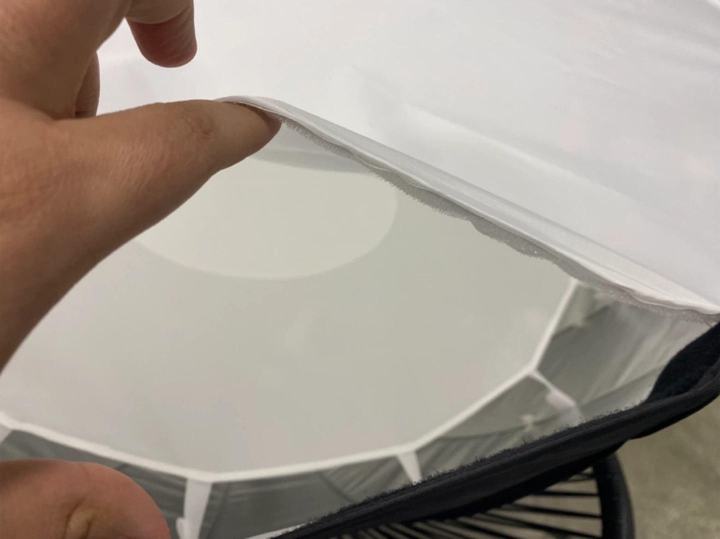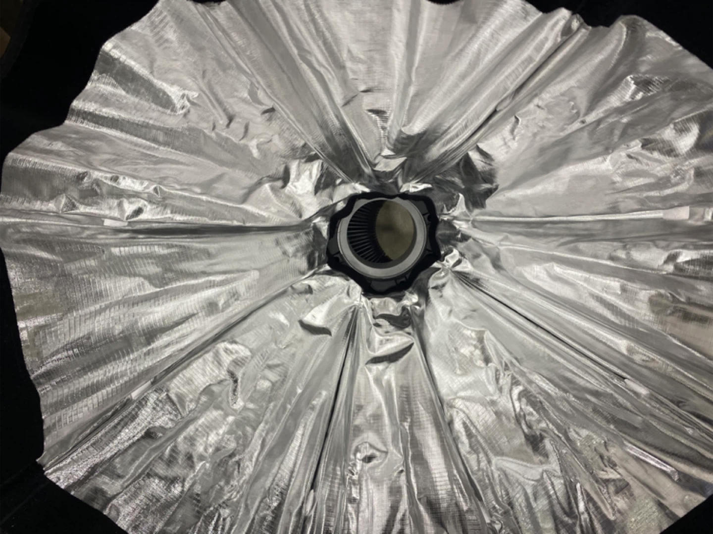 Umbrella-style octa softbox with inner and outer diffusion for soft, professional lighting.