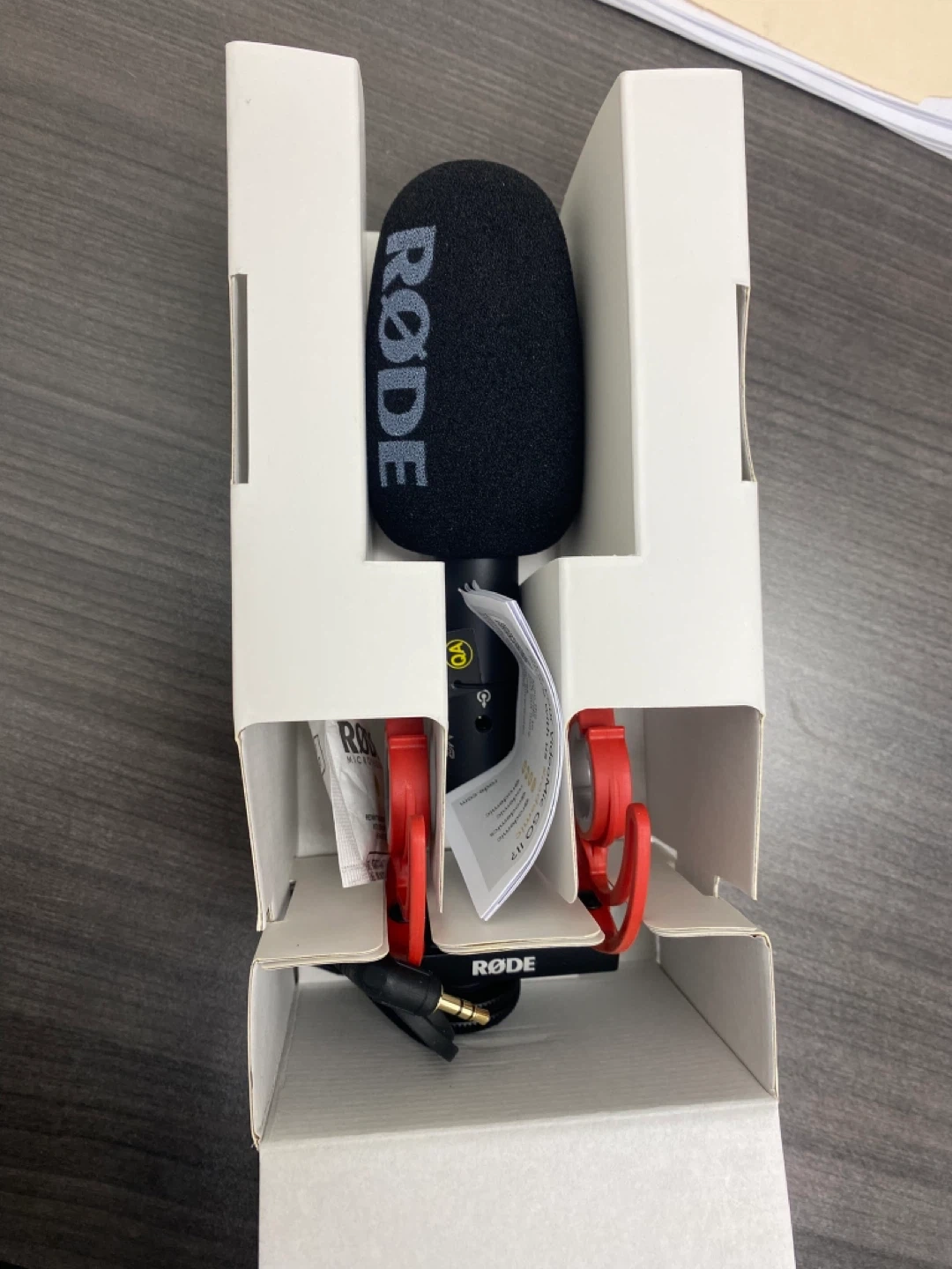 Lightweight shotgun microphone. Includes shock mount and original box.