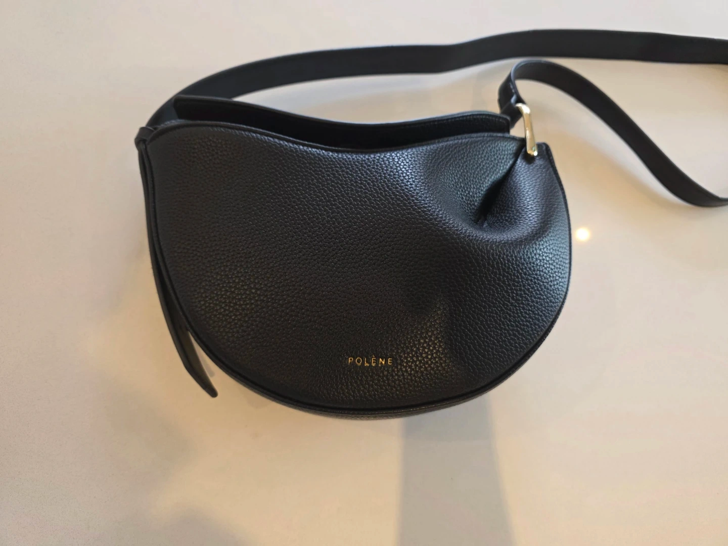 Selling a Polène Numero Dix bag in black. It's in great condition and ready for a new owner! The bag has a unique half-moon shape and is made of high-quality leather, perfect for everyday use or a night out