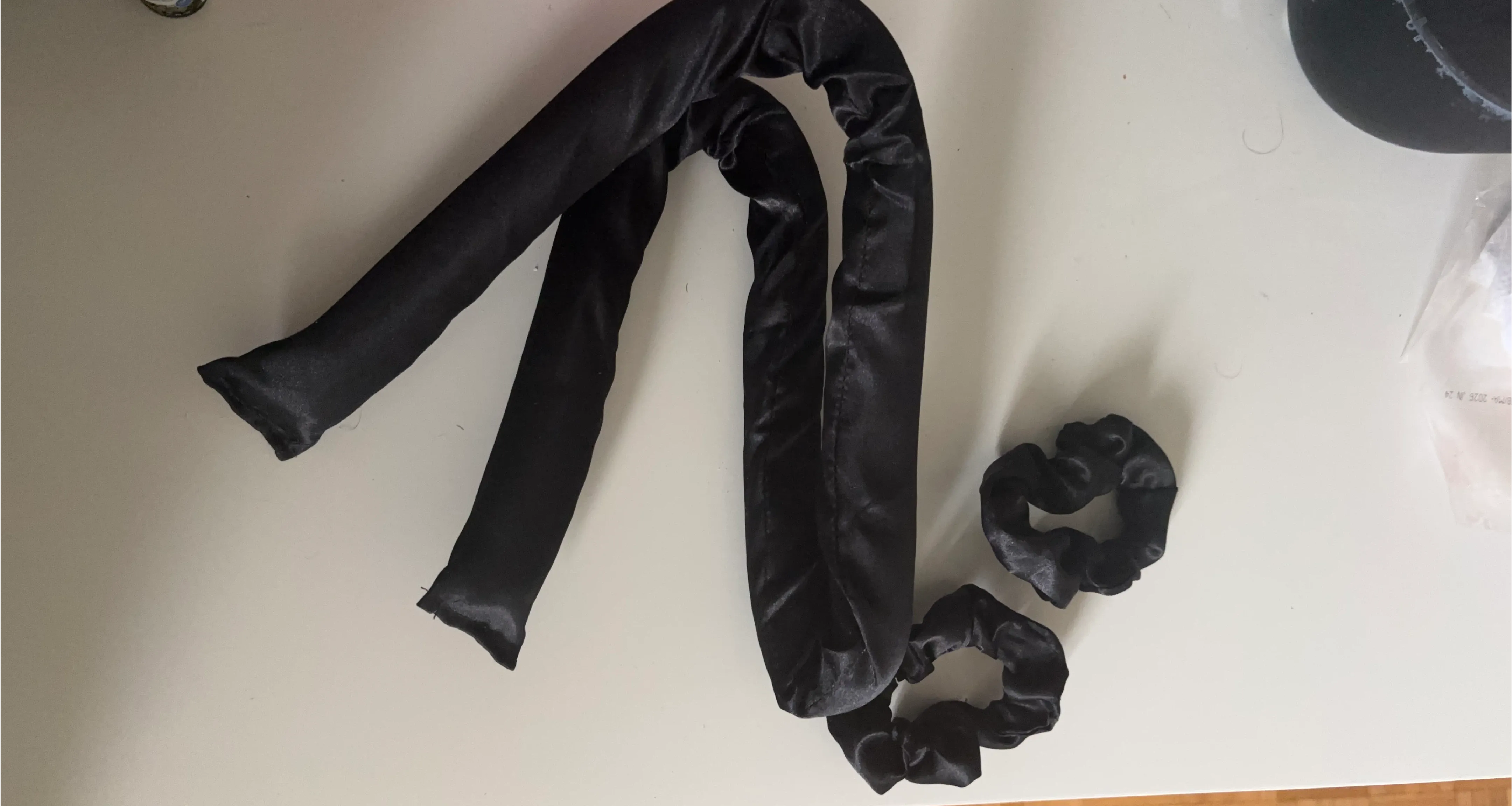Selling a black hair curler set that comes with scrunchies! It's a great way to curl your hair without heat. The set is in excellent condition and ready for a new owner