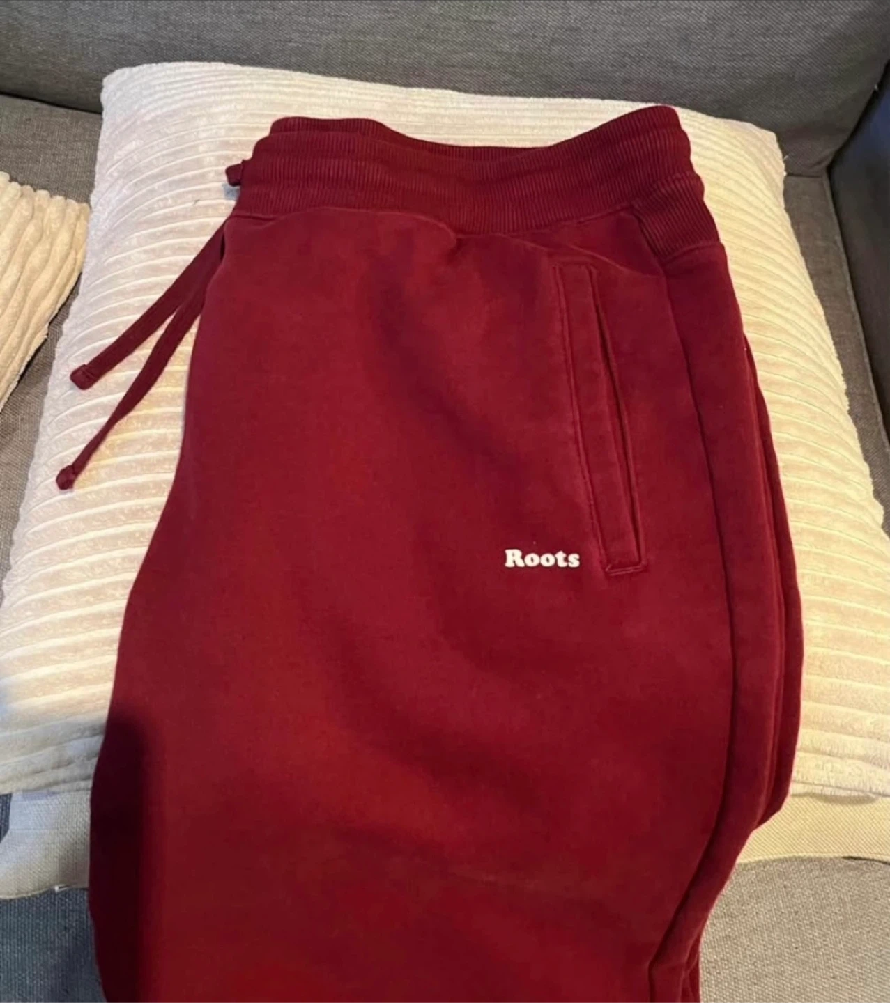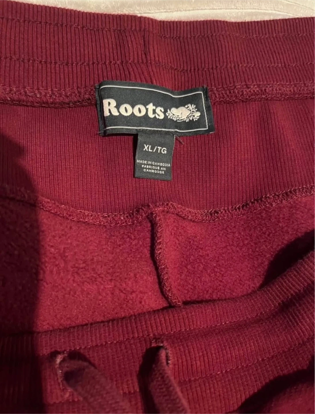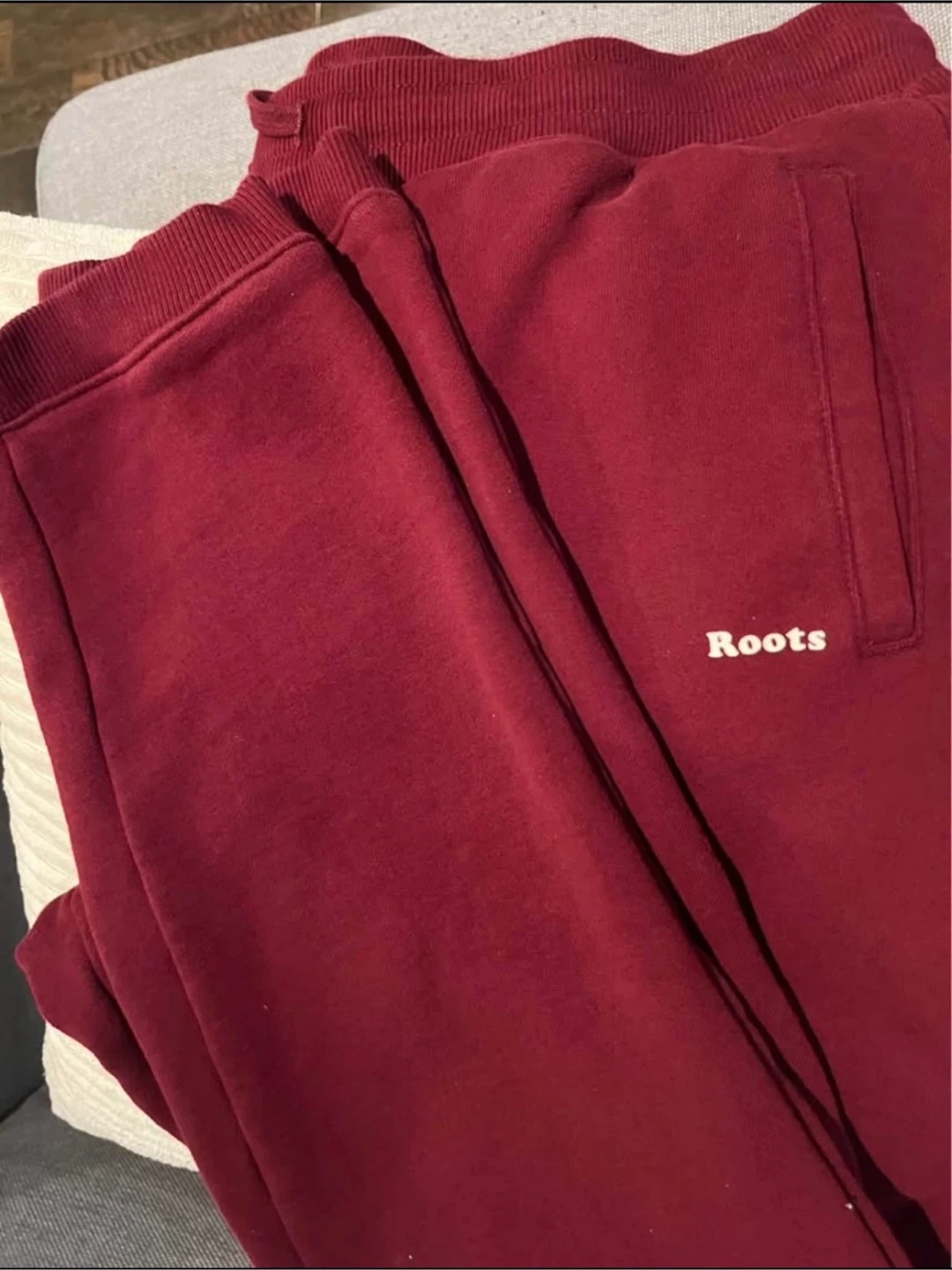 Roots sweatpants in a lovely burgundy colour. They're size XL and made in Canada. Perfect for cozy days! Women's XL