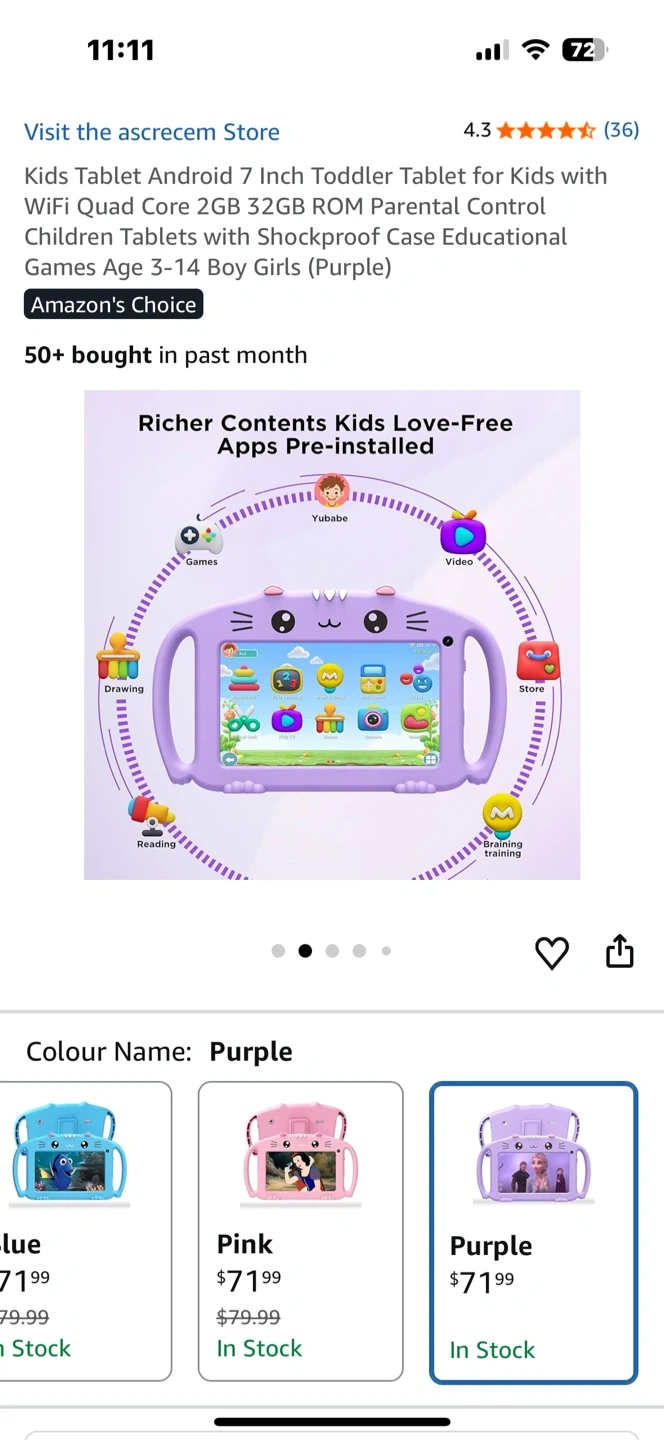 Ascrecem kids tablet! It's a 7-inch Android tablet designed for kids aged 3-14. It has a shockproof case and parental controls, perfect for educational games. The tablet has 2GB RAM and 32GB ROM. Comes with the original box!