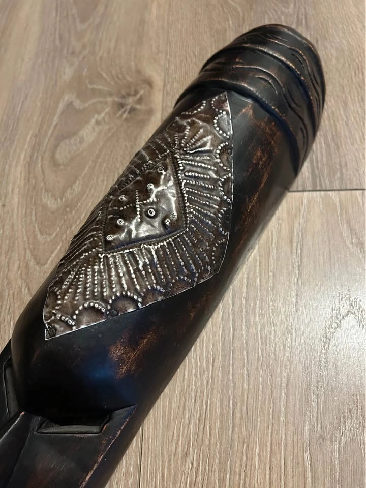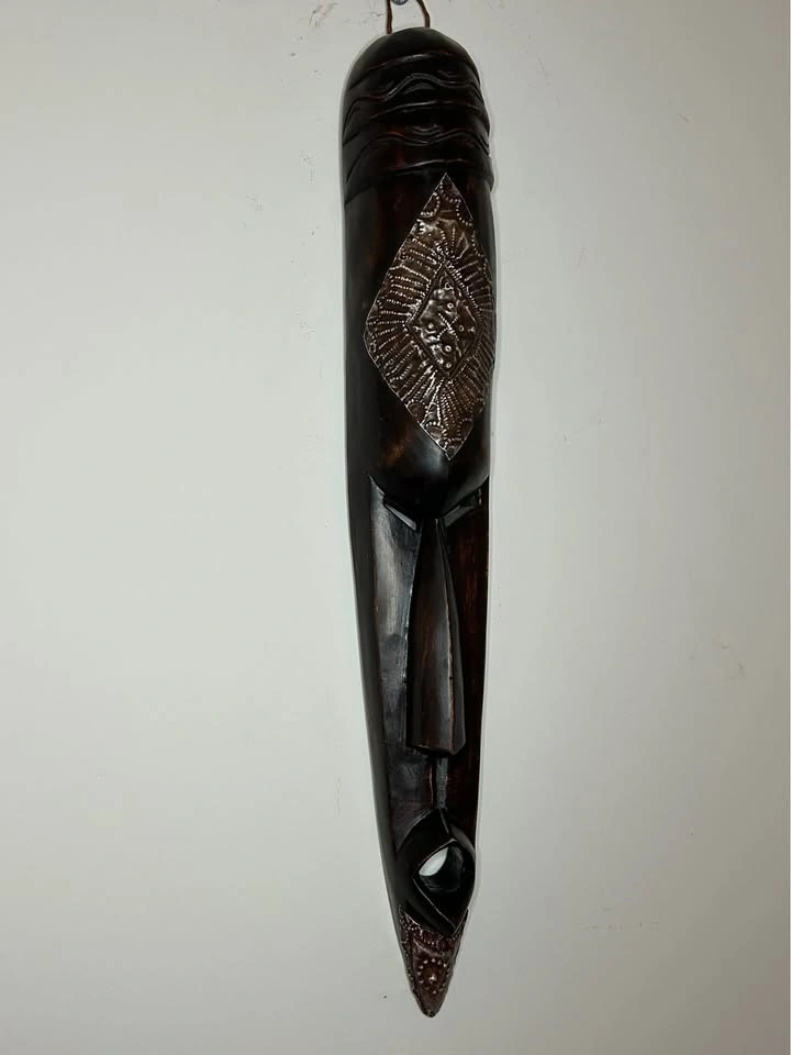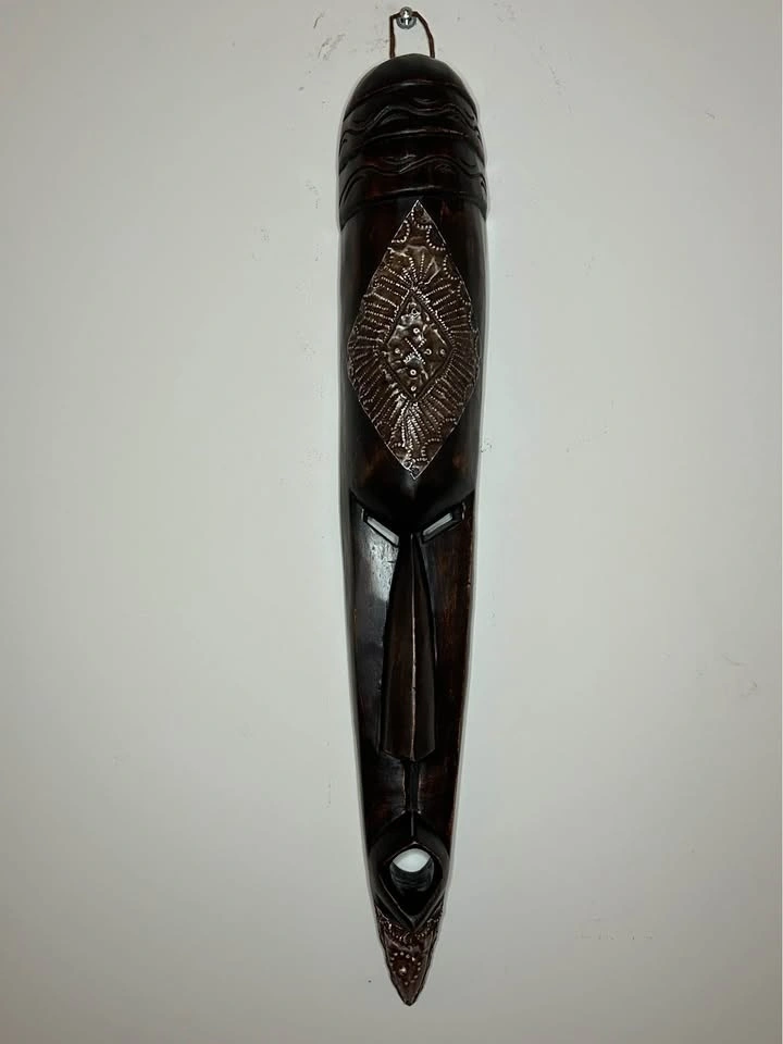 Vintage West African Wooden Mask with Metal Inlay 23” tall