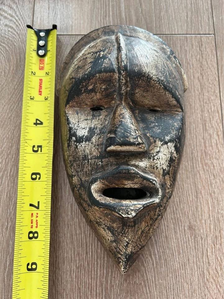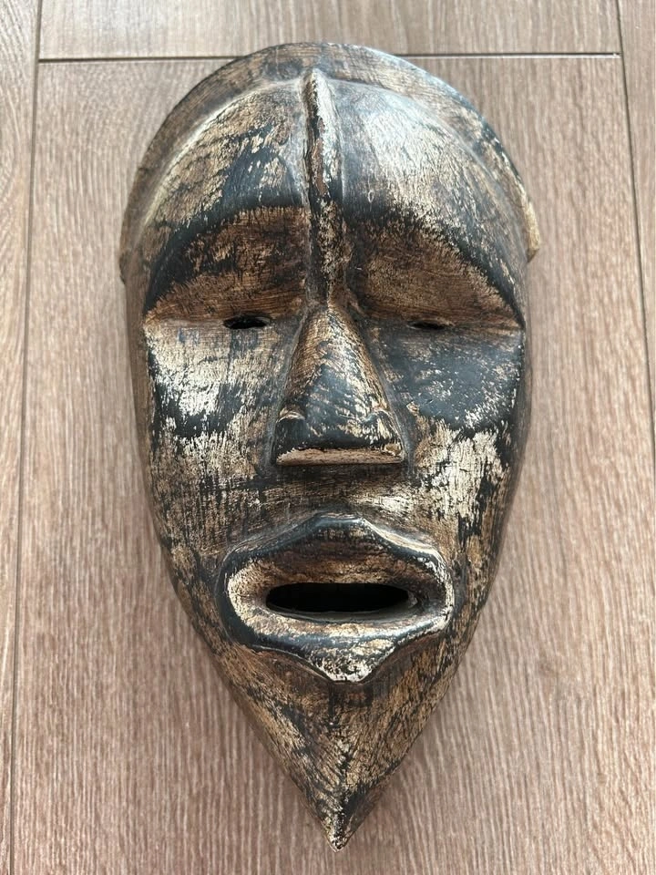 This mask was made as decorative art rather than a ceremonial object, typical of mid-to-late 20th century export carvings inspired by traditional tribal aesthetics. The surface patina and worn finish add visual depth and authenticity, making it especially appealing for collectors of rustic or global décor.