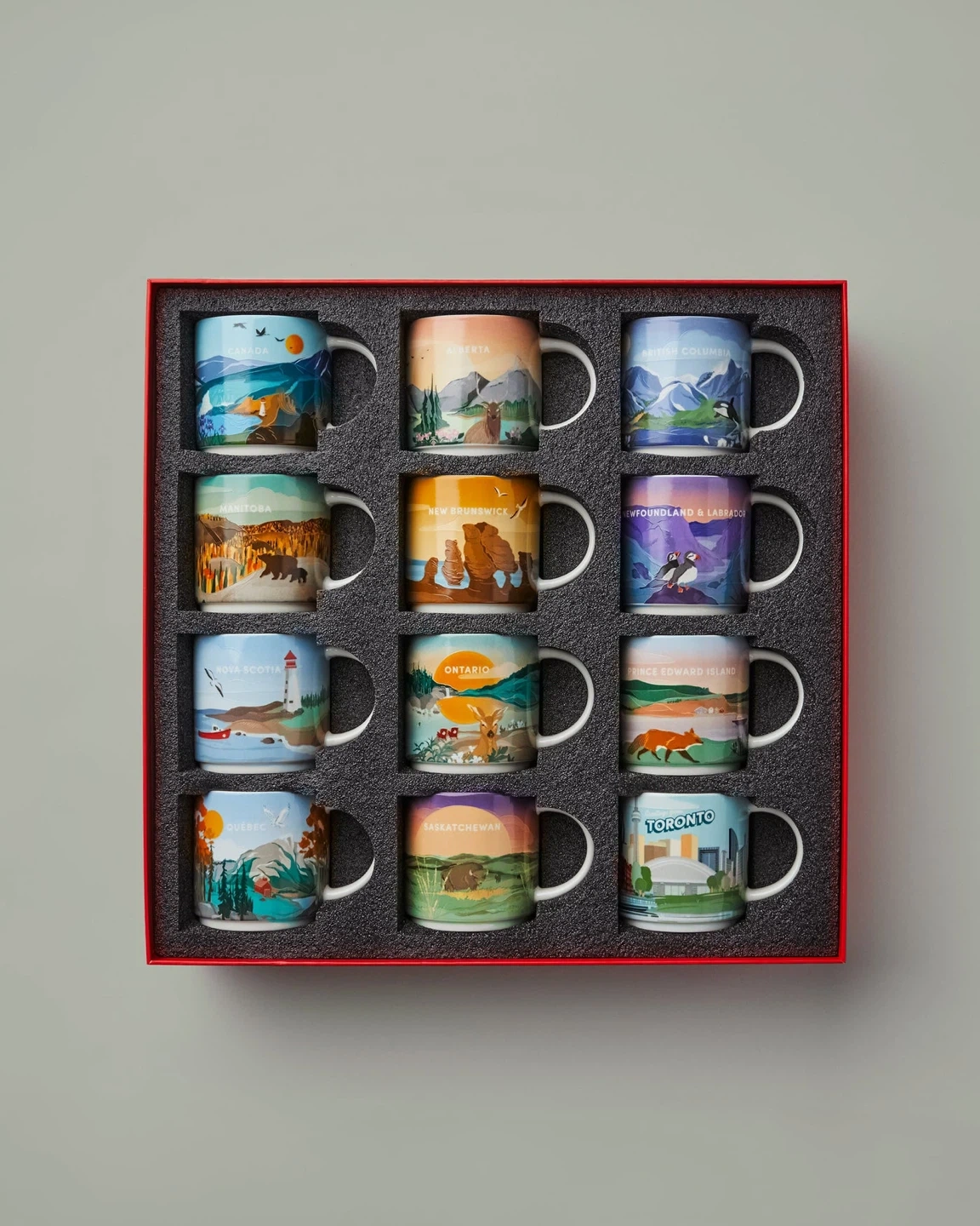 The Tims Canada Collection pays tribute to the diverse natural beauty of Canada with a set of 12 ceramic mugs. The limited-edition and collectible ceramic mugs feature original artwork by Canadian artist Av Wu.