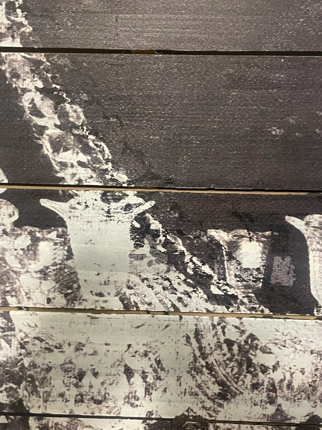 Chandelier design printed on wood planks. Adds a rustic, elegant touch to any room