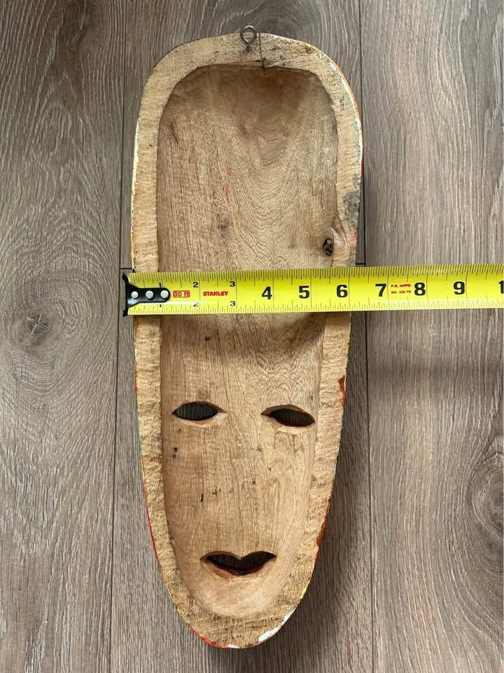 A unique handcrafted decorative mask with excellent wall impact. Please review all photos carefully for details and condition.