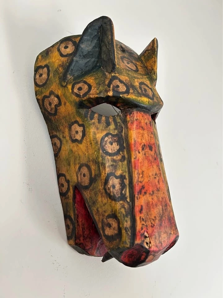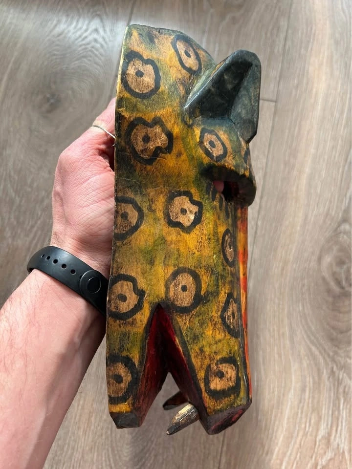 Hand-Carved Wooden Animal Mask – Vintage Folk Art Wall Decor