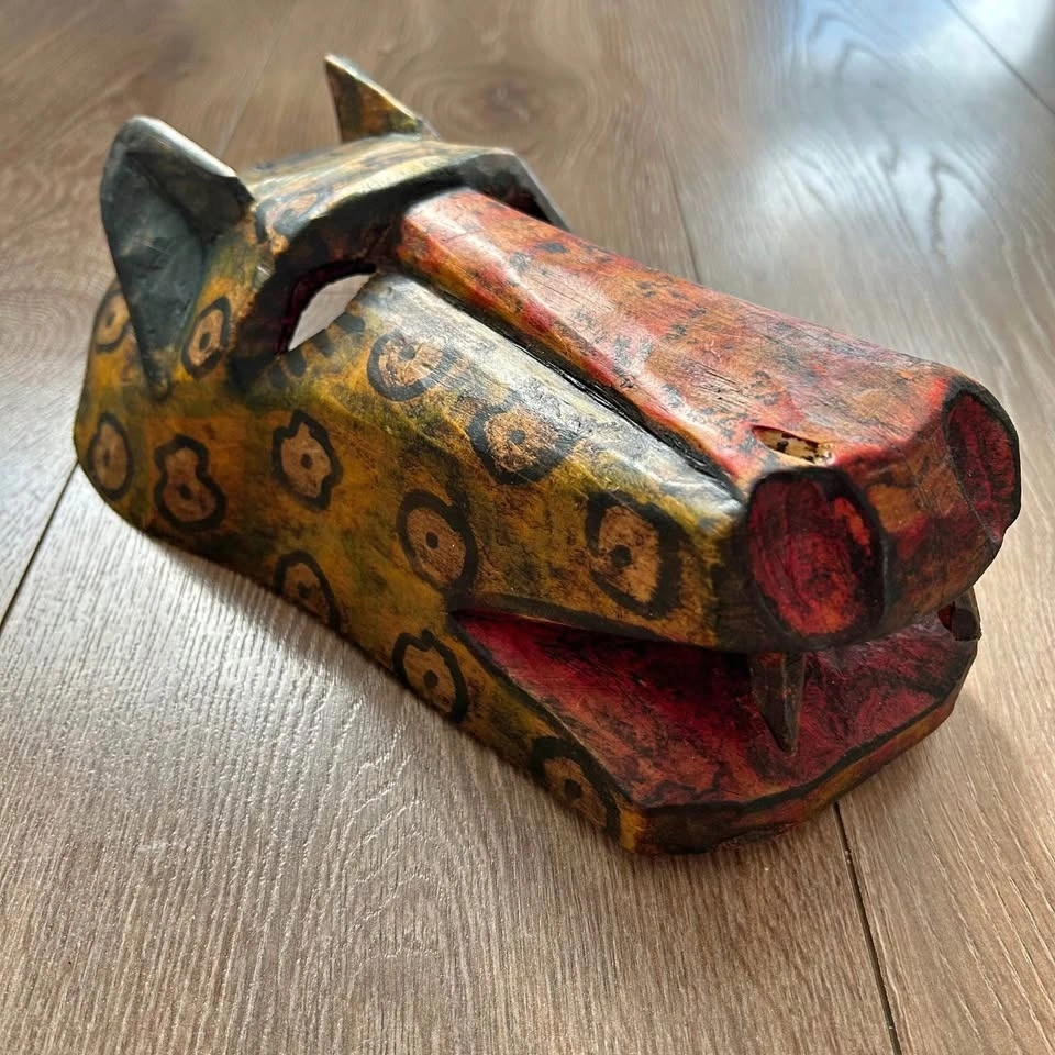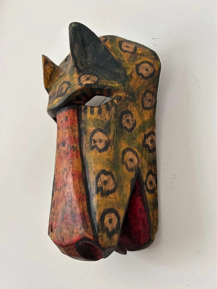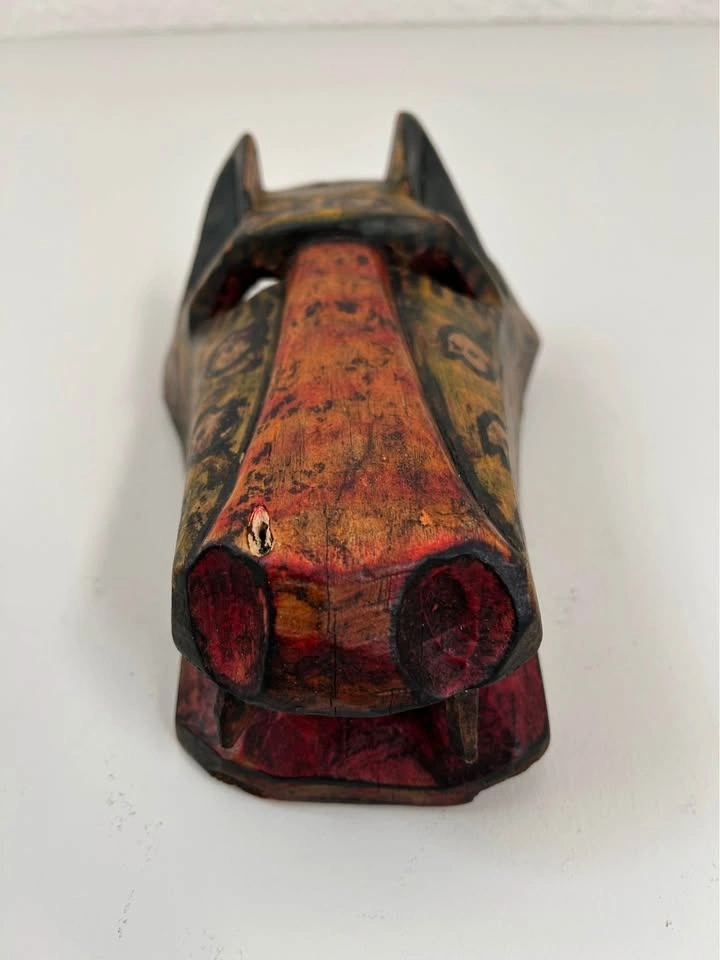 Hand-Carved Wooden Animal Mask – Vintage Folk Art Wall Decor