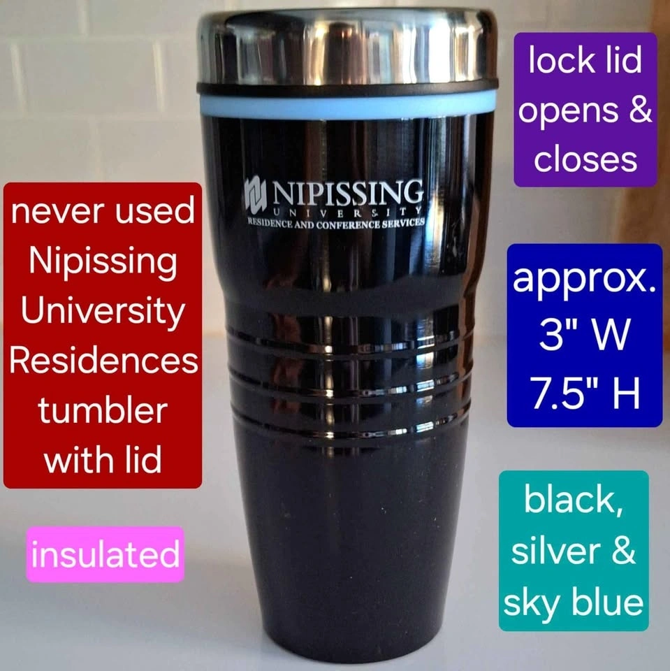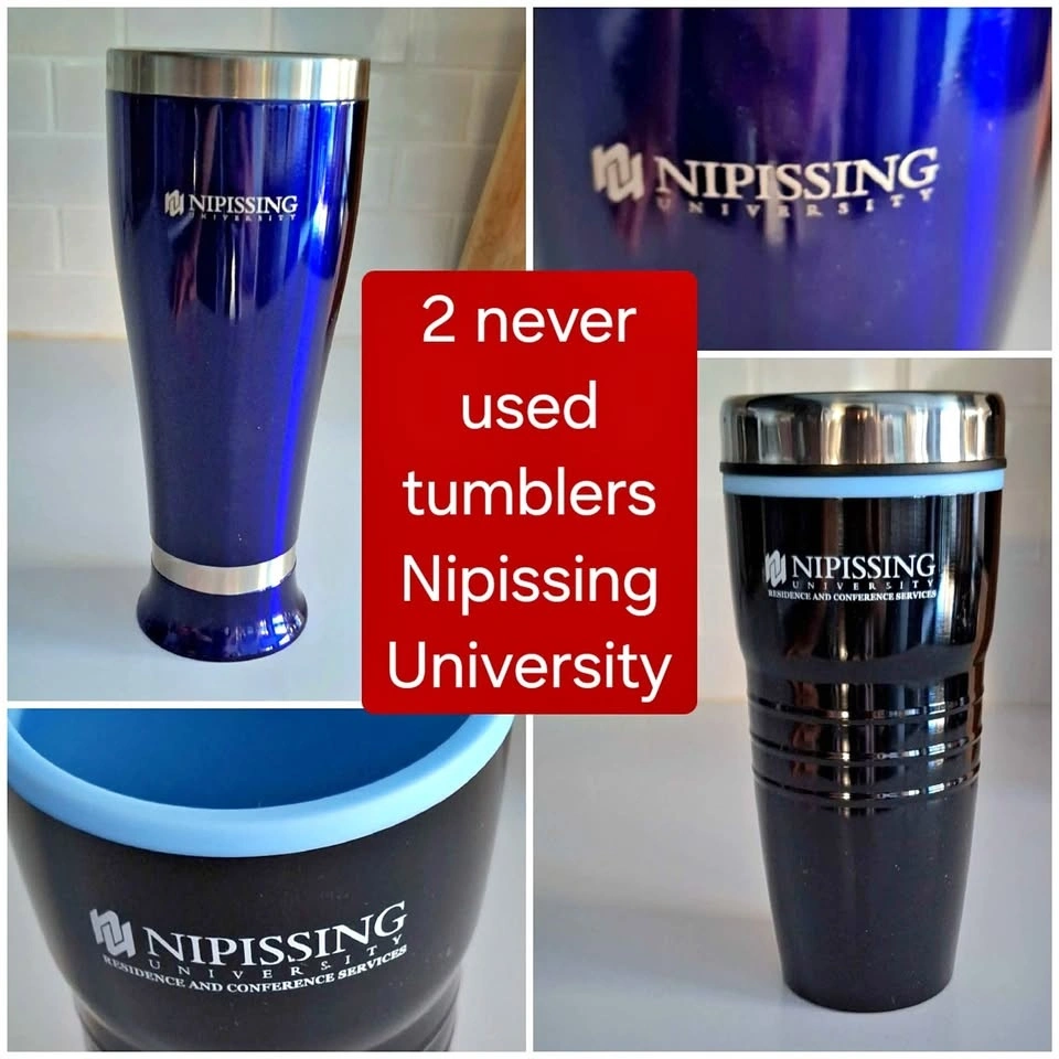 2 NEVER USED Nipissing University insulated tumblers - recently rediscovered wrapped up in storage!