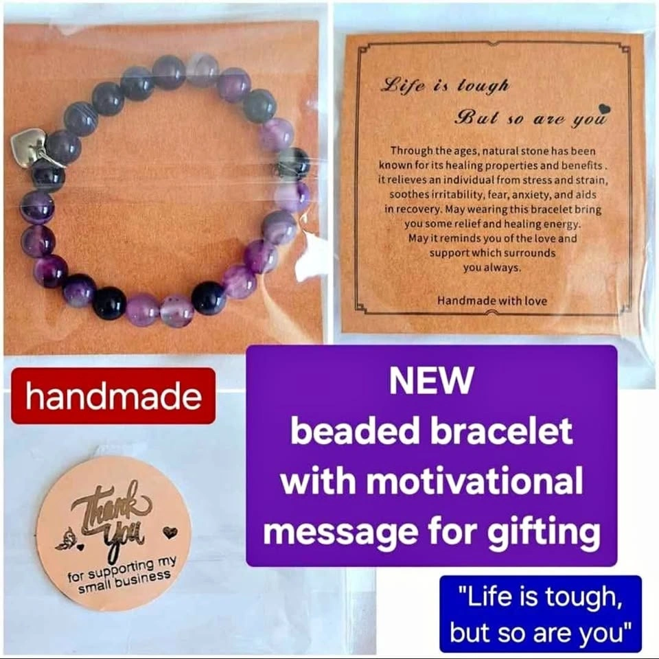 NEW still wrapped beaded bracelet that comes with motivational message: "Life is tough, but so are you" - perfect for gifting!
