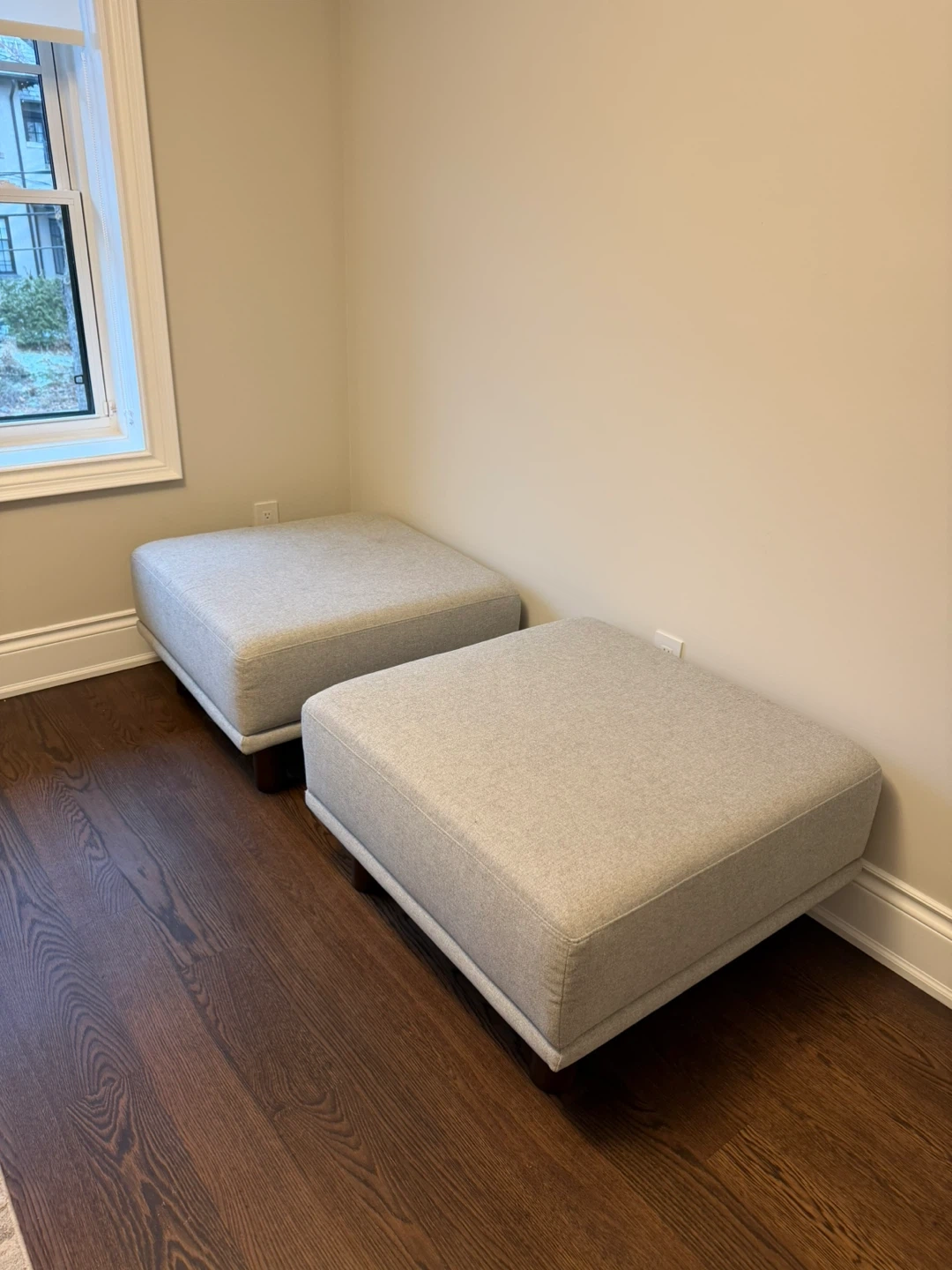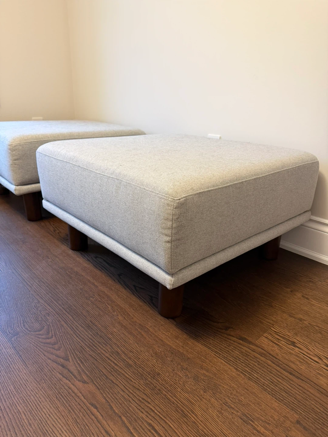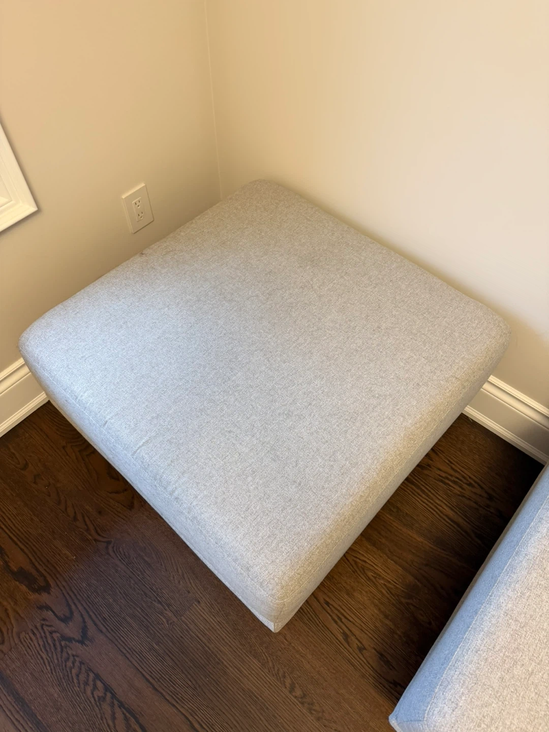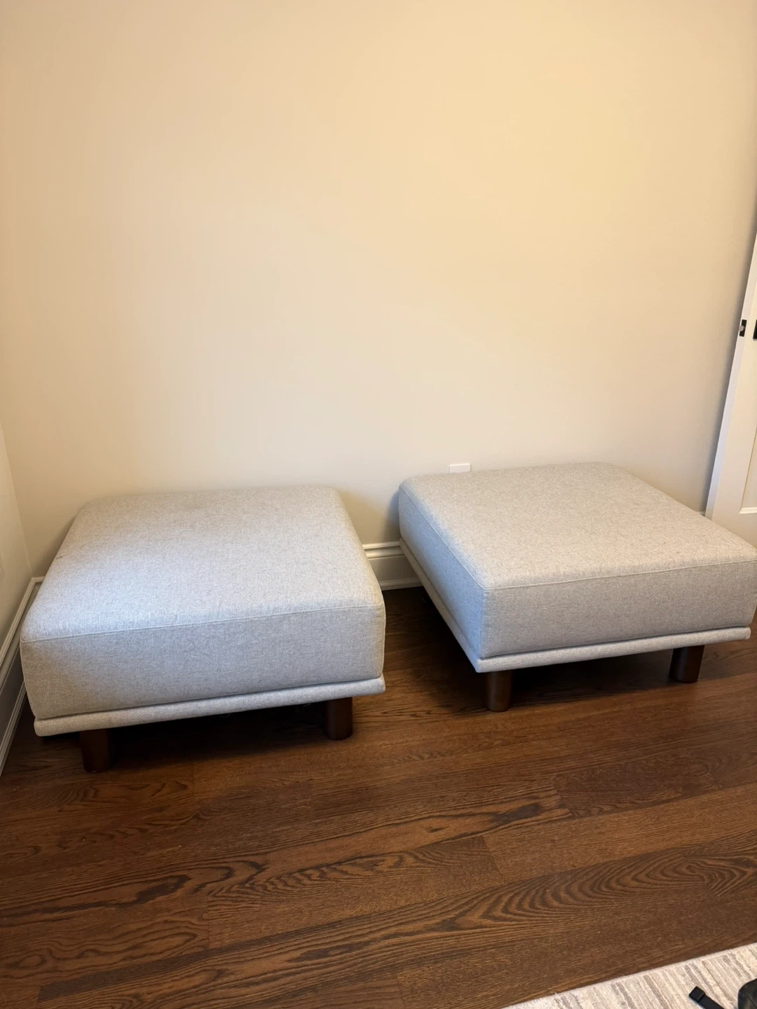 This is the Cozey Luna floating ottoman. I have two available. Asking $200 for each, or $350 for both. Ottoman approx measures 32” x 32” x 18”. This is the “tall leg” configuration. Bought in October and barely used so basically new condition, no issues.