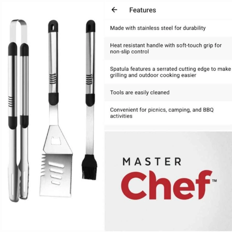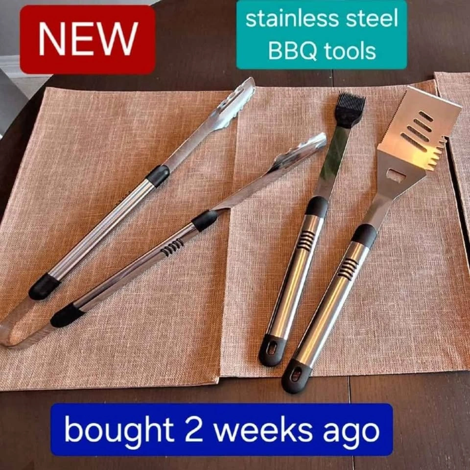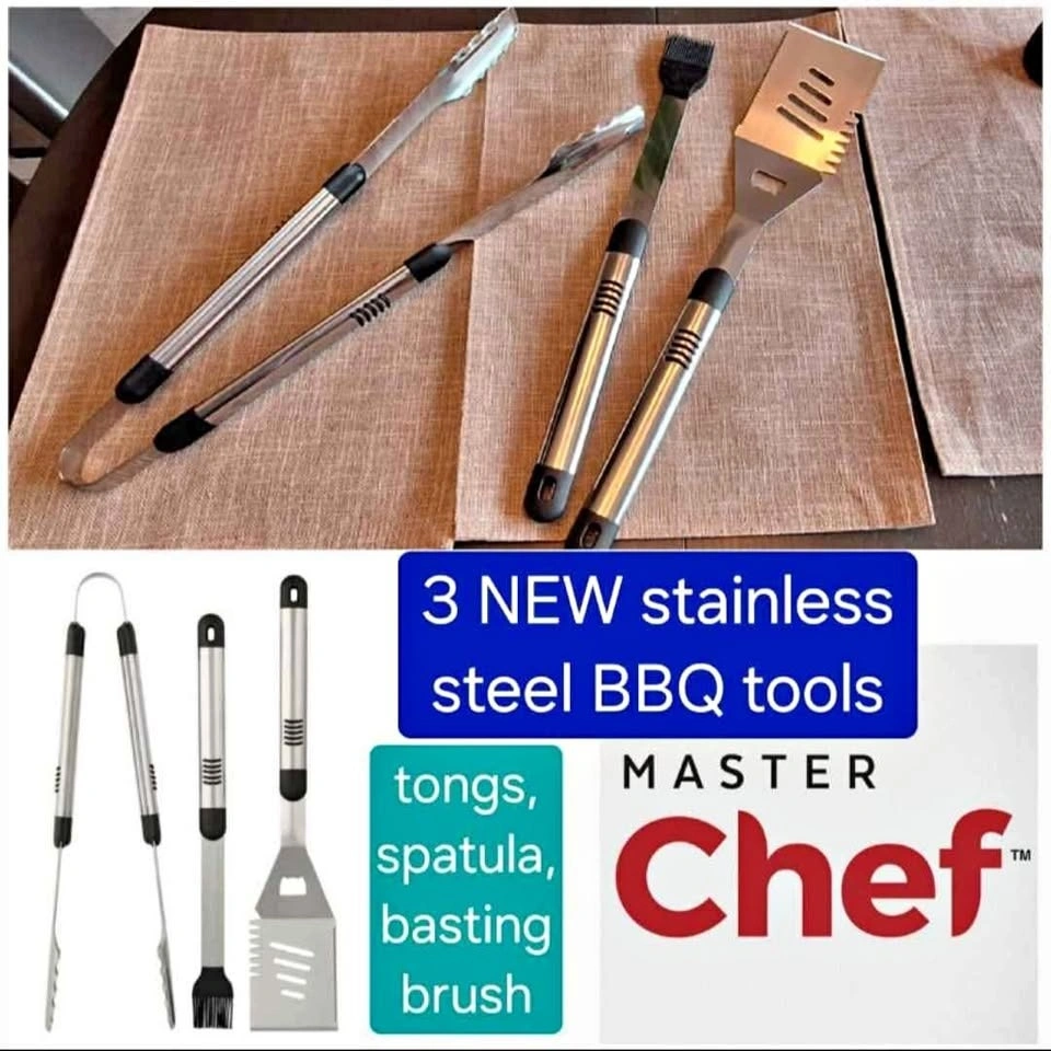 NEW set of 3 stainless steel BBQ tools, MasterChef brand from Canadian Tire - we recently moved and bought this new set, but then we were given a different set as a gift (and want to show those people we kept their gift)