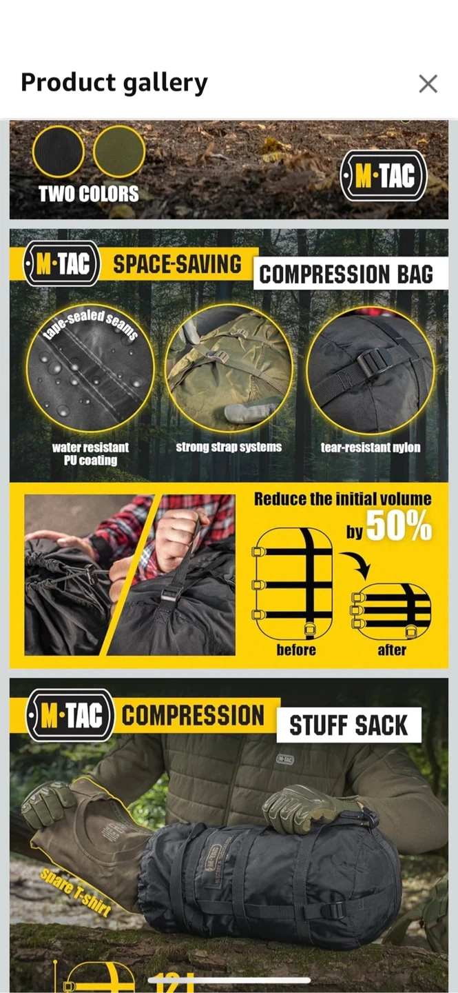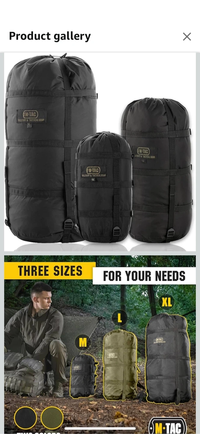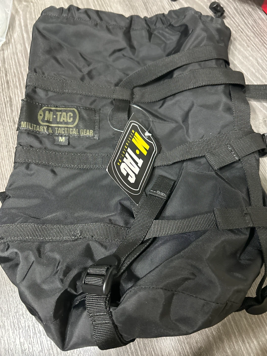 Selling a new black M-Tac compression stuff sack in size M. It's a space-saving bag with strong strap systems and tear-resistant nylon. It also has a water-resistant PU coating. This !bag reduces the initial volume by 50%.
