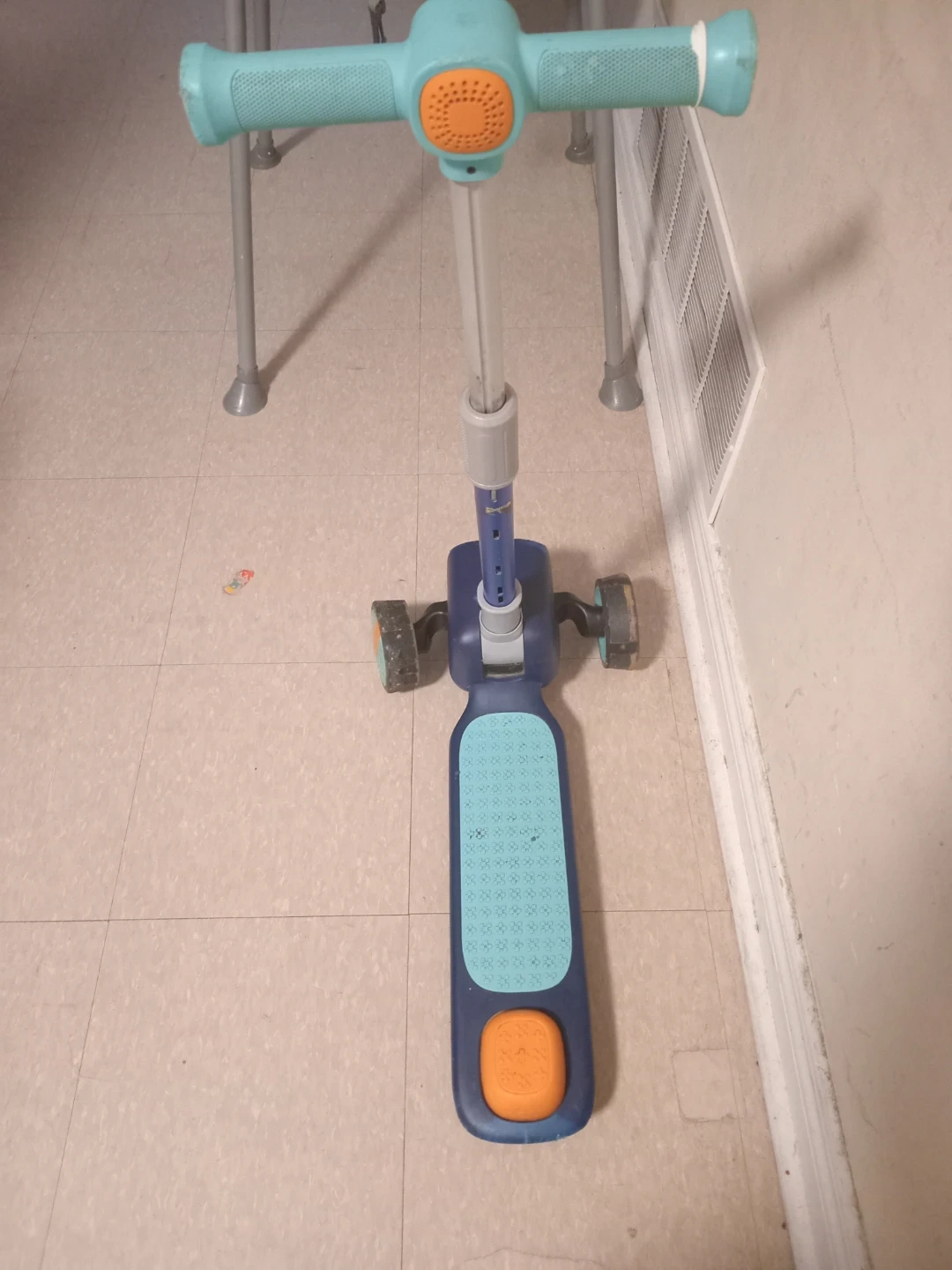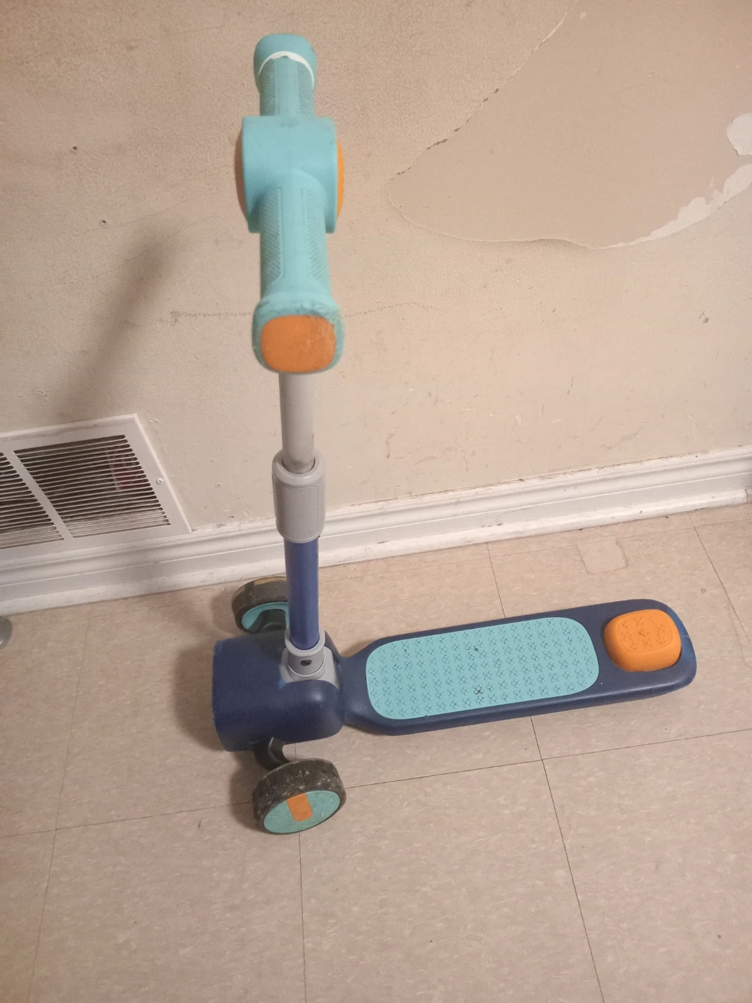 Selling a kids' scooter in good condition! It features a sturdy design with a blue base and teal accents. Perfect for little ones learning to scoot around the neighbourhood or park. It's lightweight and easy to manoeuvre, making it a great choice for young children. The only issue is it isn't able to fold down. Message if interested.