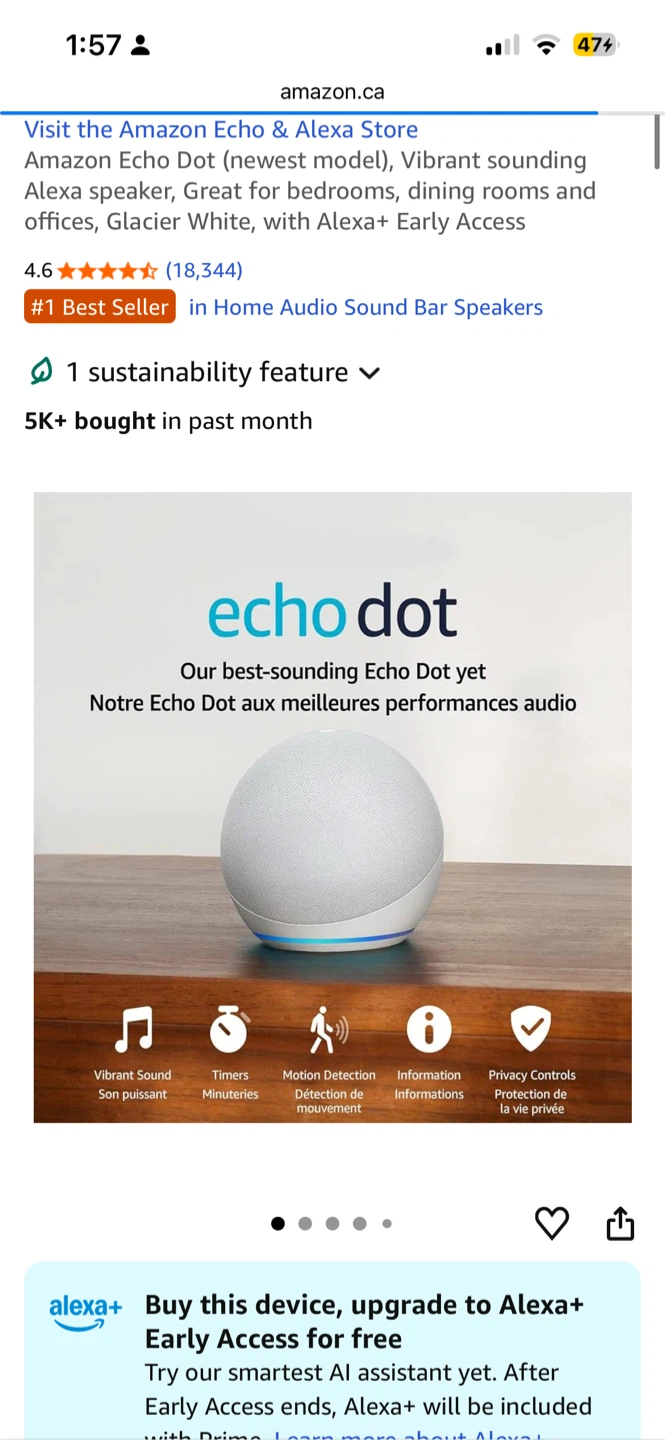 Selling an Amazon Echo Dot 5th Generation! This smart speaker is in great condition and ready to connect to your home network. It comes with the original charger so you can get it set up right away.