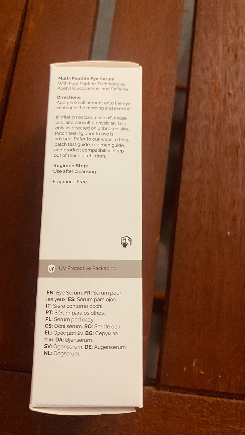 Selling The Ordinary Multi-Peptide Eye Serum. It's a multi-technology peptide formula for the eye area. It comes in a 15mL (0.5 fl oz) size and has UV protective packaging. It's also fragrance free, perfect for sensitive skin