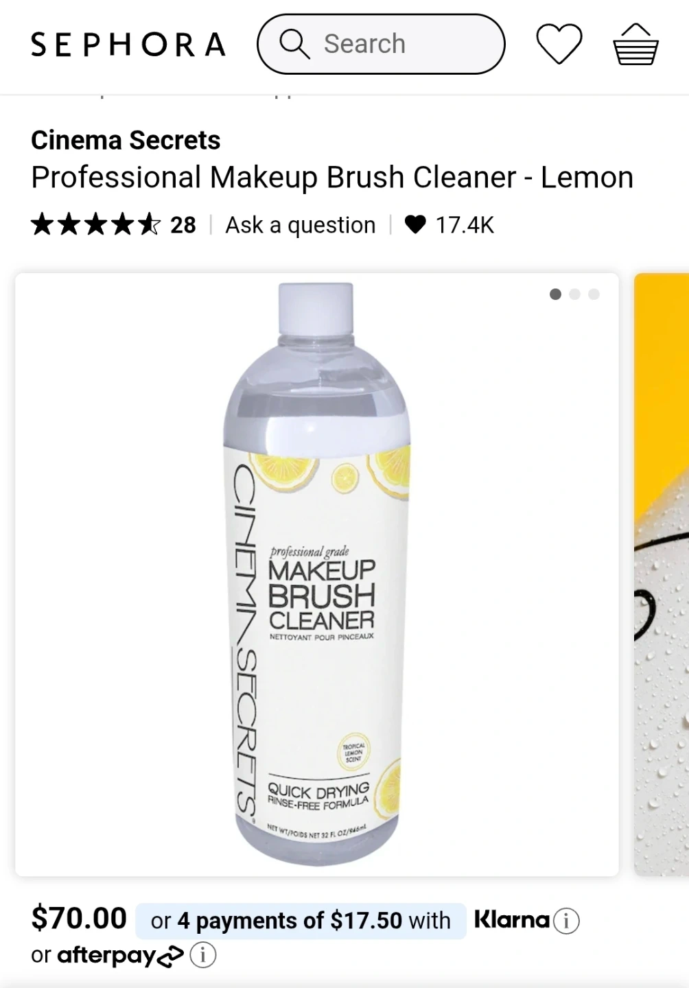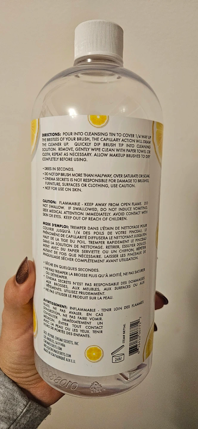 Selling a Cinema Secrets Professional Grade Makeup Brush Cleaner (50% off). It's a quick-drying, rinse-free formula with a tropical lemon scent. Less than net weight is 32 fl oz/946mL (see image). I'm selling because of buyers remorse - I don't use makeup that often to have such a big bottle to quick clean my brushes. Sephora sells for it $70. PU only at Coppersmith/ Ironwood Plaza.