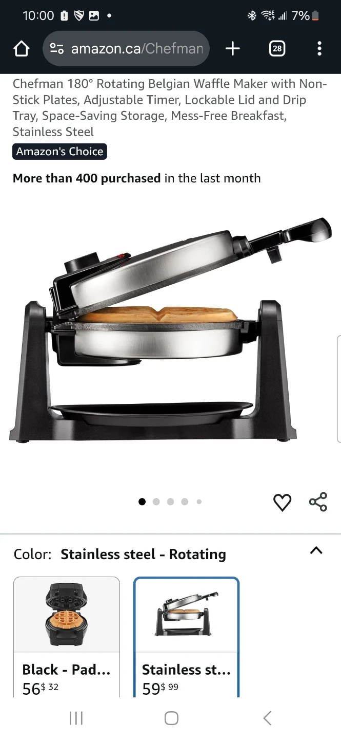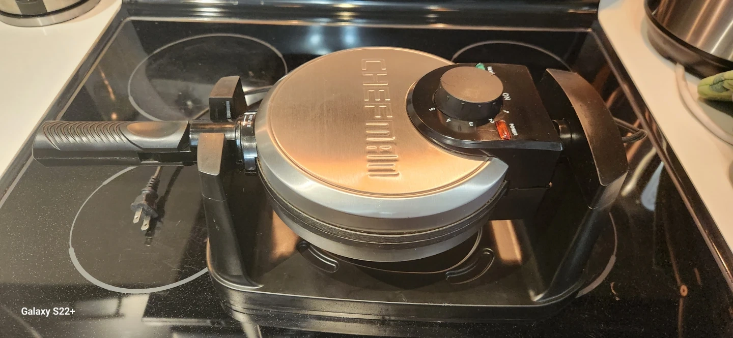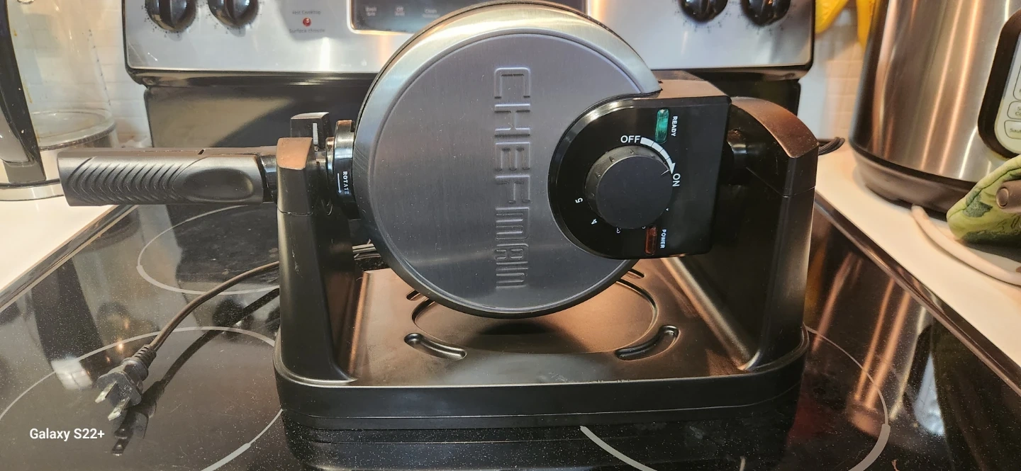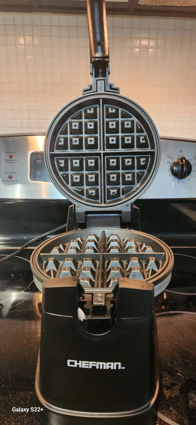 Get ready for delicious Belgian waffles with this Chefman 180° rotating waffle maker! It features non-stick plates, an adjustable timer, and a lockable lid for mess-free breakfast making. The space-saving storage is a great bonus too!