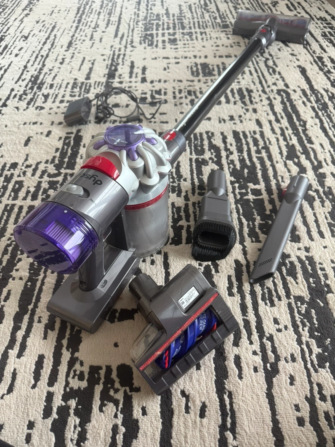 I'm selling a Dyson v8 Animal cordless vacuum that's perfect for pet owners and anyone looking for a lightweight, powerful cleaning solution. This vacuum features a direct-drive cleaner head and whole-machine filtration to capture allergens and dirt effectively. It's in used-good condition, ready to tackle any mess.