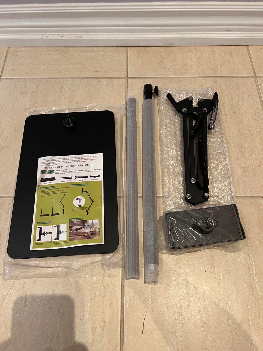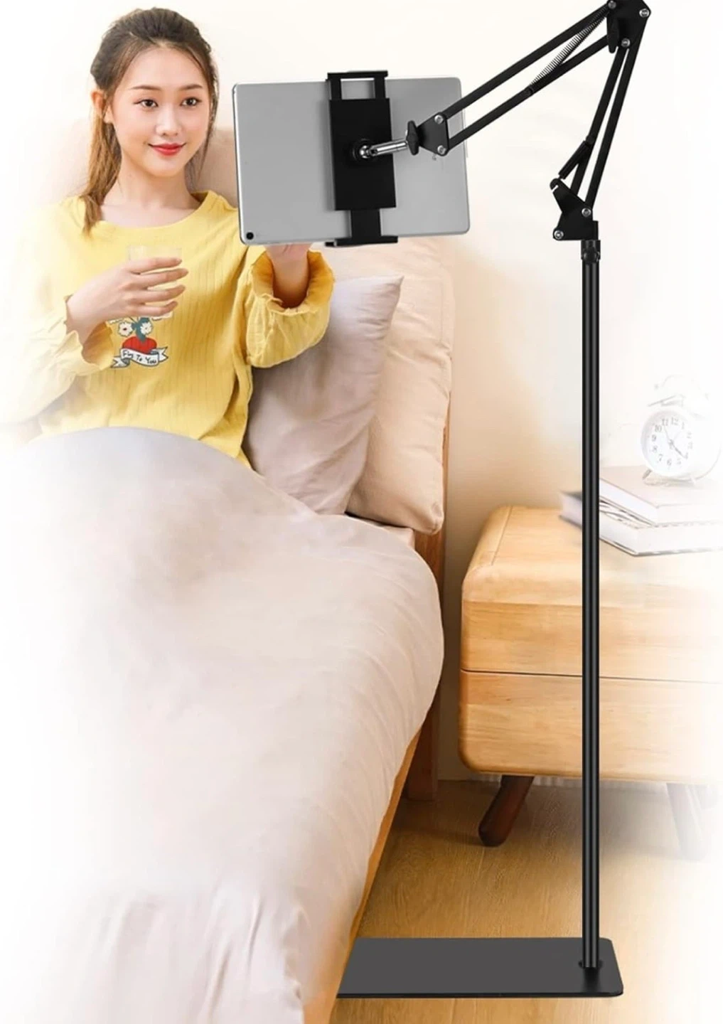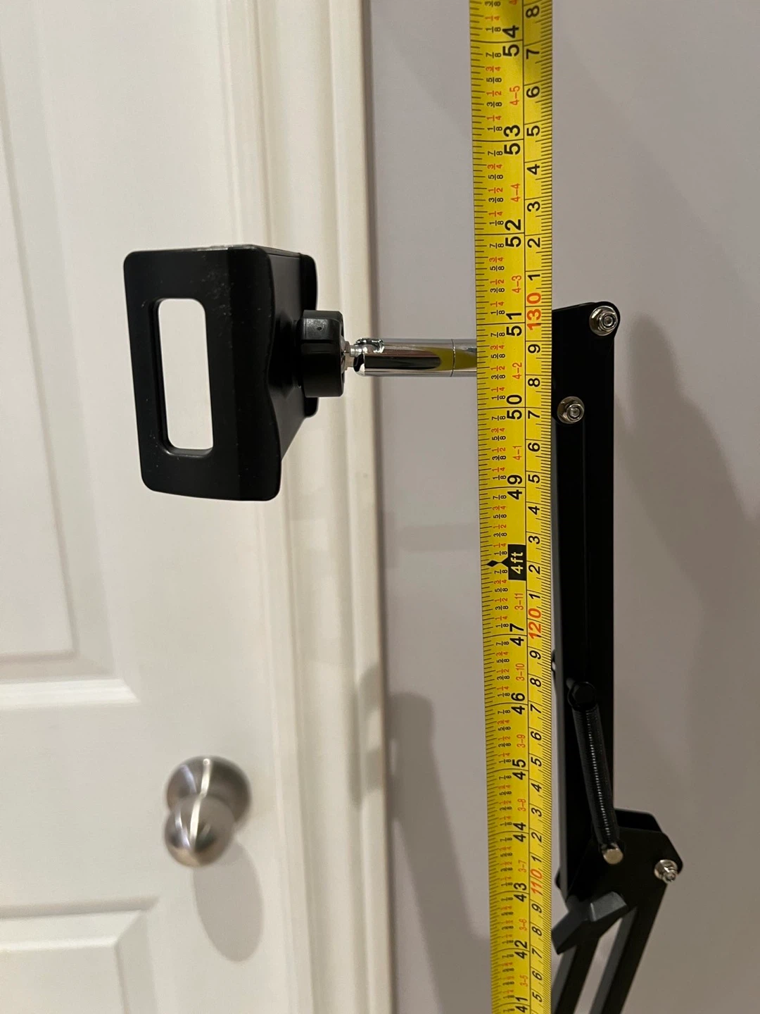 Selling a handy adjustable phone stand in black! It's in great condition and perfect for holding your phone while you watch videos or take photos. The base is approximately 15 inches long and the stand can extend up to 54 inches tall. It's super easy to adjust to the perfect height and angle for your needs