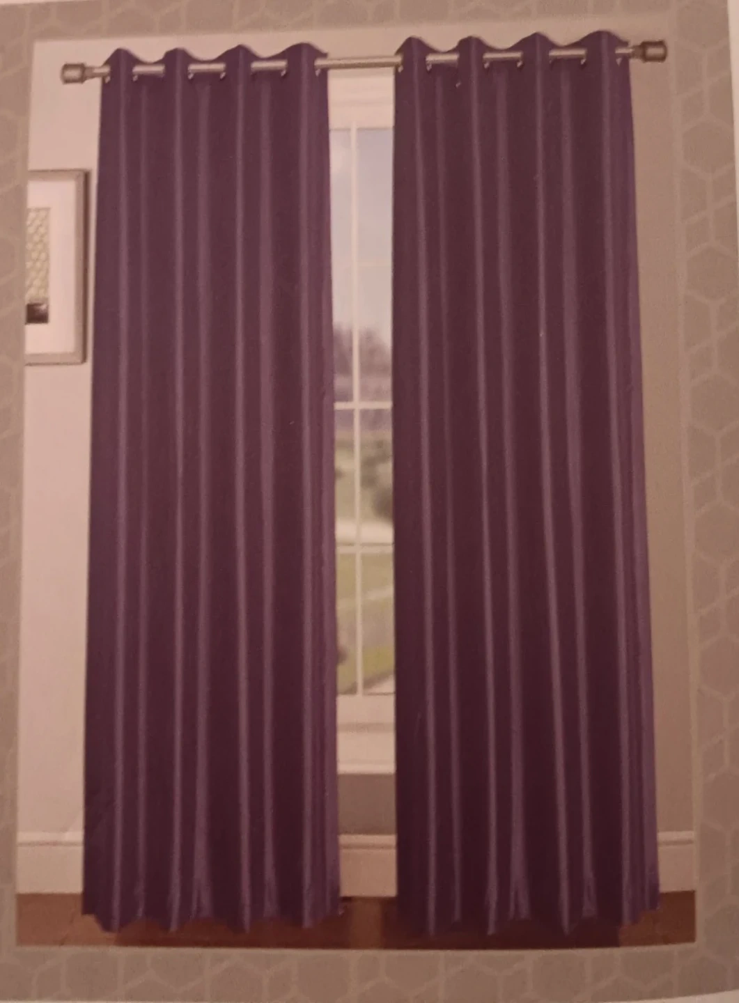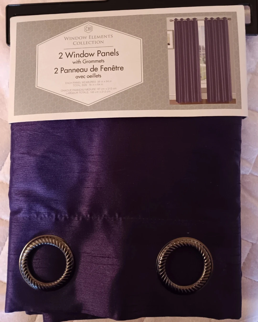 Selling a set of two CHI Window Elements Collection window panels. These panels are a beautiful purple colour and come with grommets for easy hanging. Each panel measures 38 inches by 84 inches, making the total size 76 inches by 84 inches. They are brand new and ready to add a touch of elegance to your home!