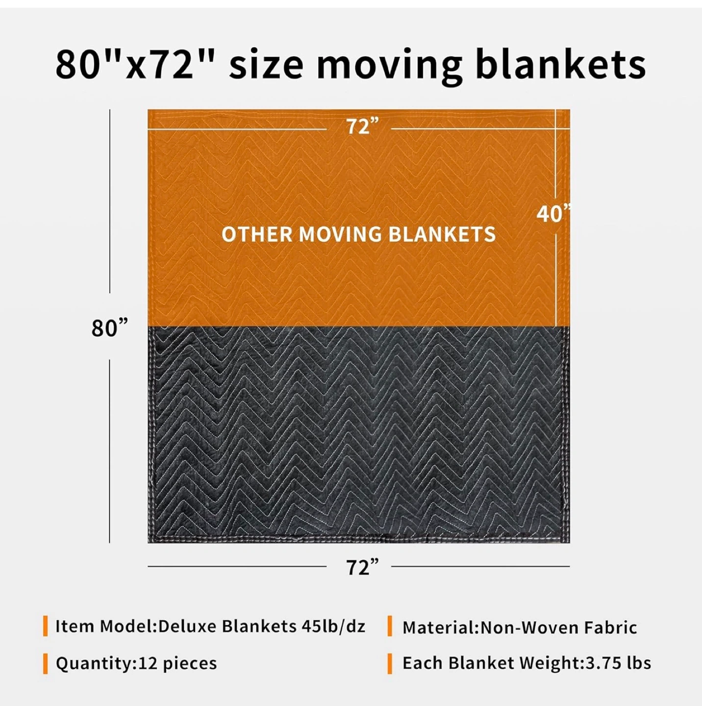 Buy & SellJourney Deluxe Moving Blankets 80" x 72"Journey Deluxe Moving Blankets 80" x 72"$15Moving Blankets 72"x80", (45 lb/dz Weight), Heavy Duty Moving Blanket, Deluxe Quality Padded Packing Blankets for Furniture Shipping and Storage, Black (1 Blanket)ConditionNewWHERE TO MEET90-26 51st AveView MapSELLERverifiedAnnaElmhurst58950 reviews0 chats·0 favorites·15 viewsSEND CHAT TO SELLERHi Anna! I’m interested in your listing.Hi Anna! I’m interested in your listing.Get the Karrot app to chatSign In to chat
