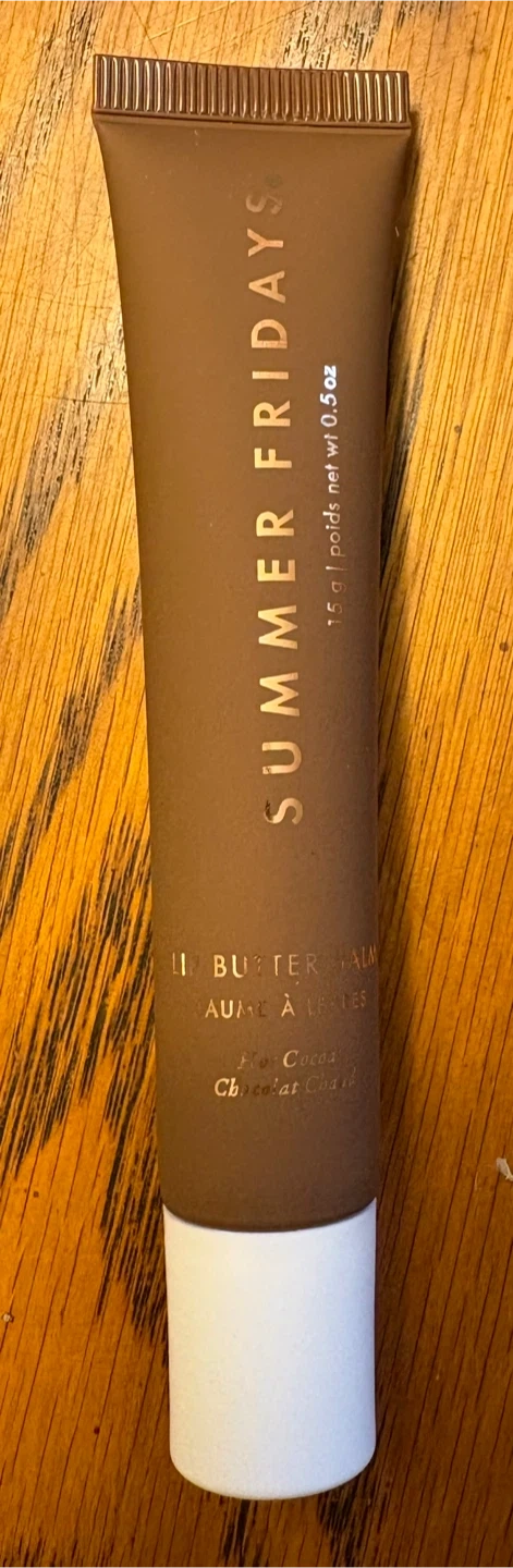 Summer Fridays Lip Butter Balm in the Hot Cocoa flavour! This balm is vegan and can be used as needed throughout the day, either under or over lipstick. It comes in a 15 g / poids net wt 0.5 oz tube 😊