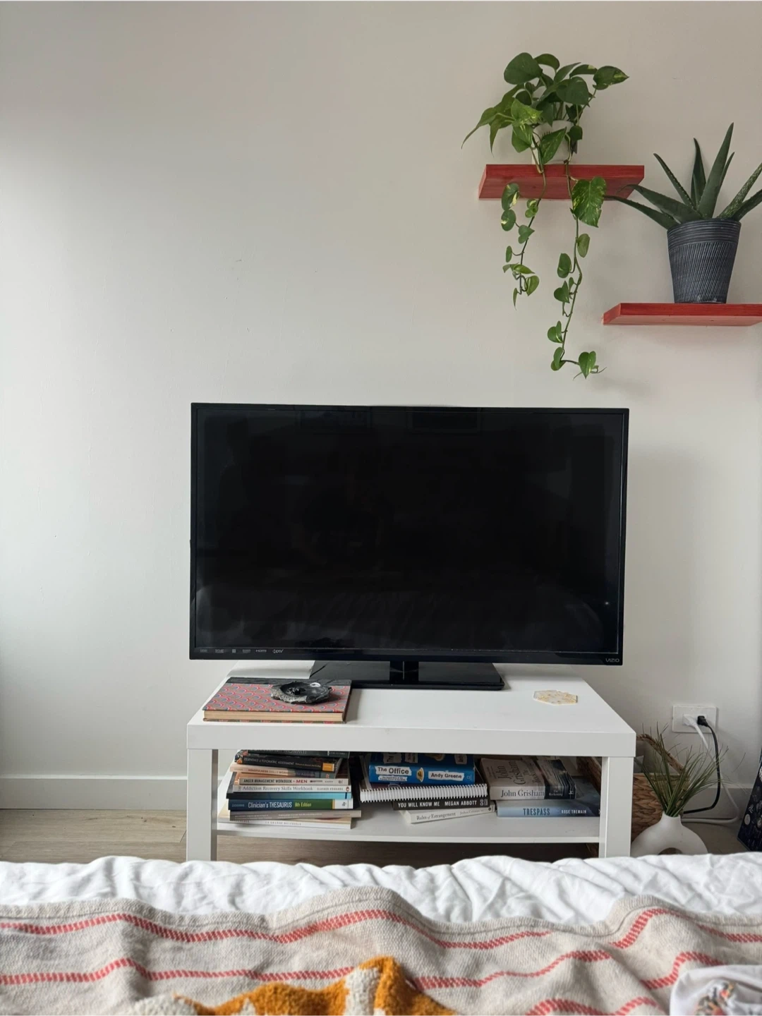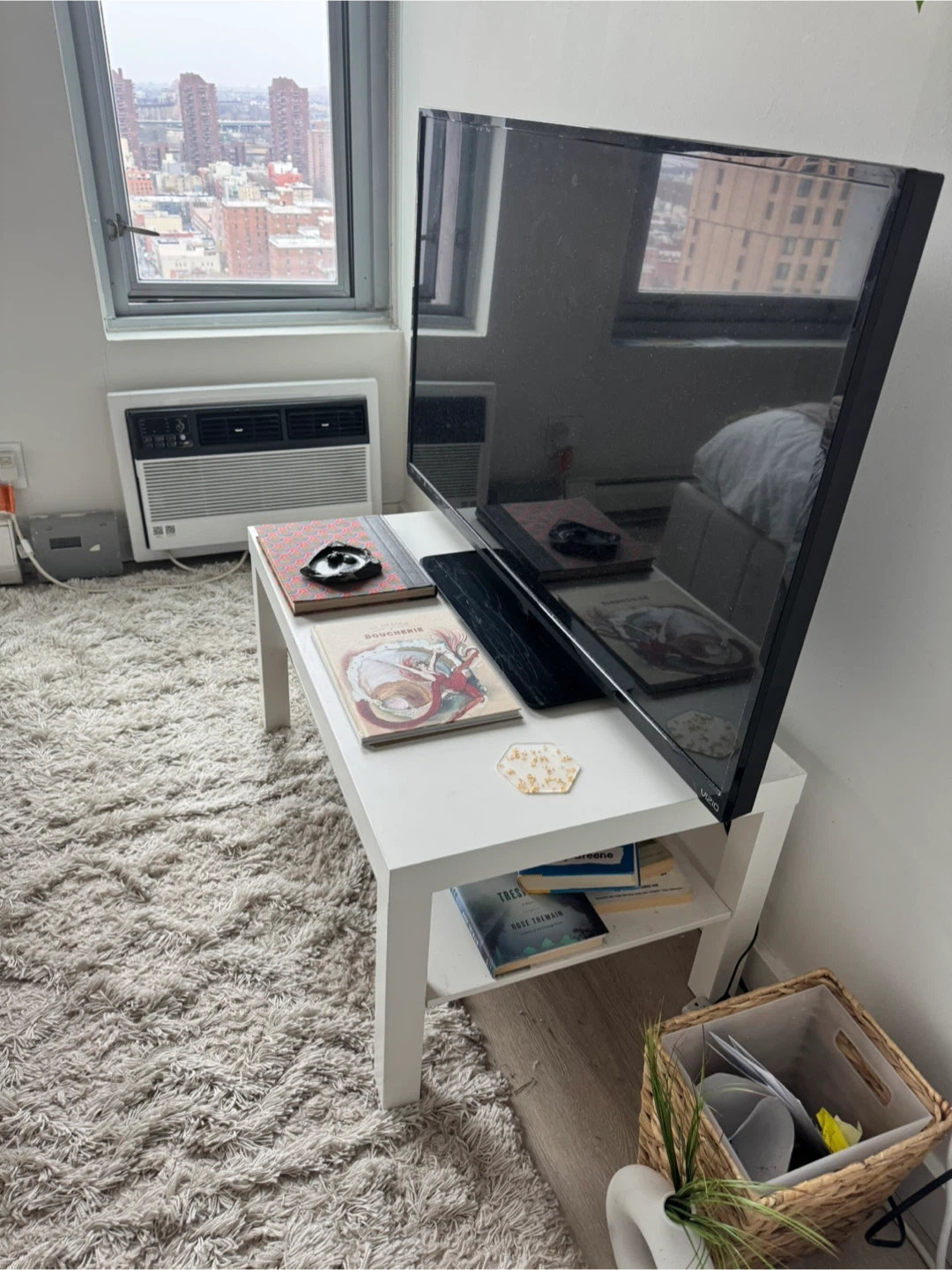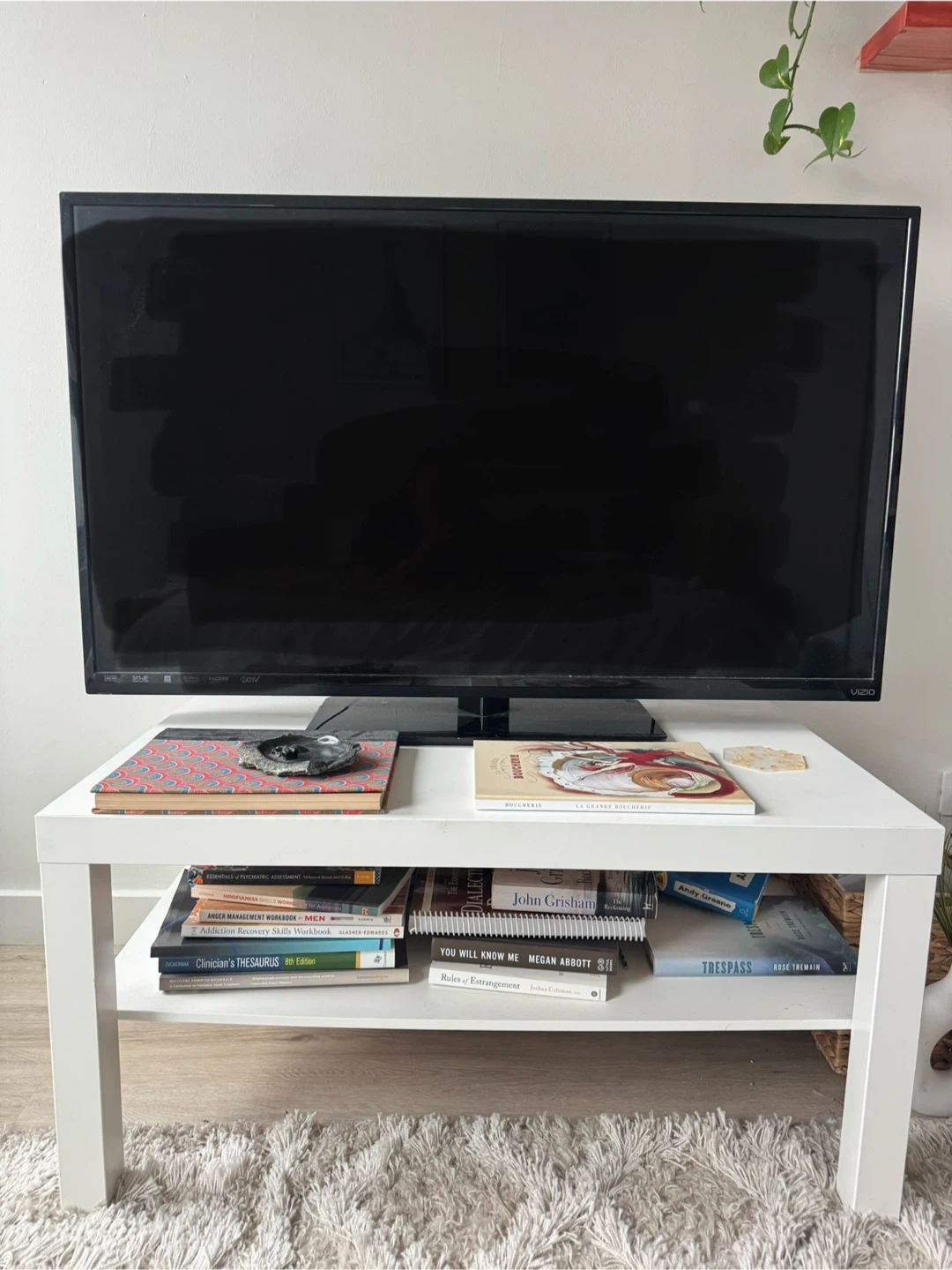 Selling a white coffee table that can also double as a TV stand in good condition. It has a shelf underneath for extra storage. Very cute design/style - I preferred it as a coffee table in my previous apartment as it adds so much to the living room! The pics of it as a tv stand don’t do it justice.