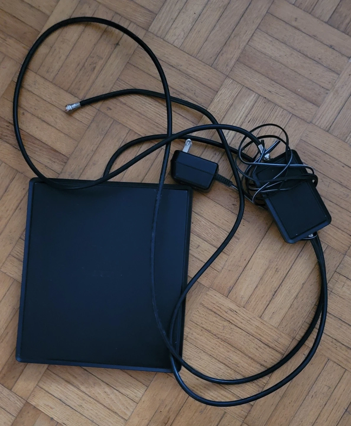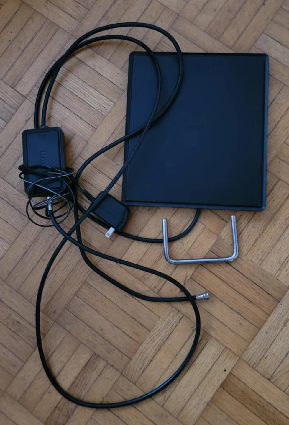 Selling a black flat digital TV antenna. It comes with the power adaptor and cable as shown in the pictures. Perfect for getting local channels on your TV!