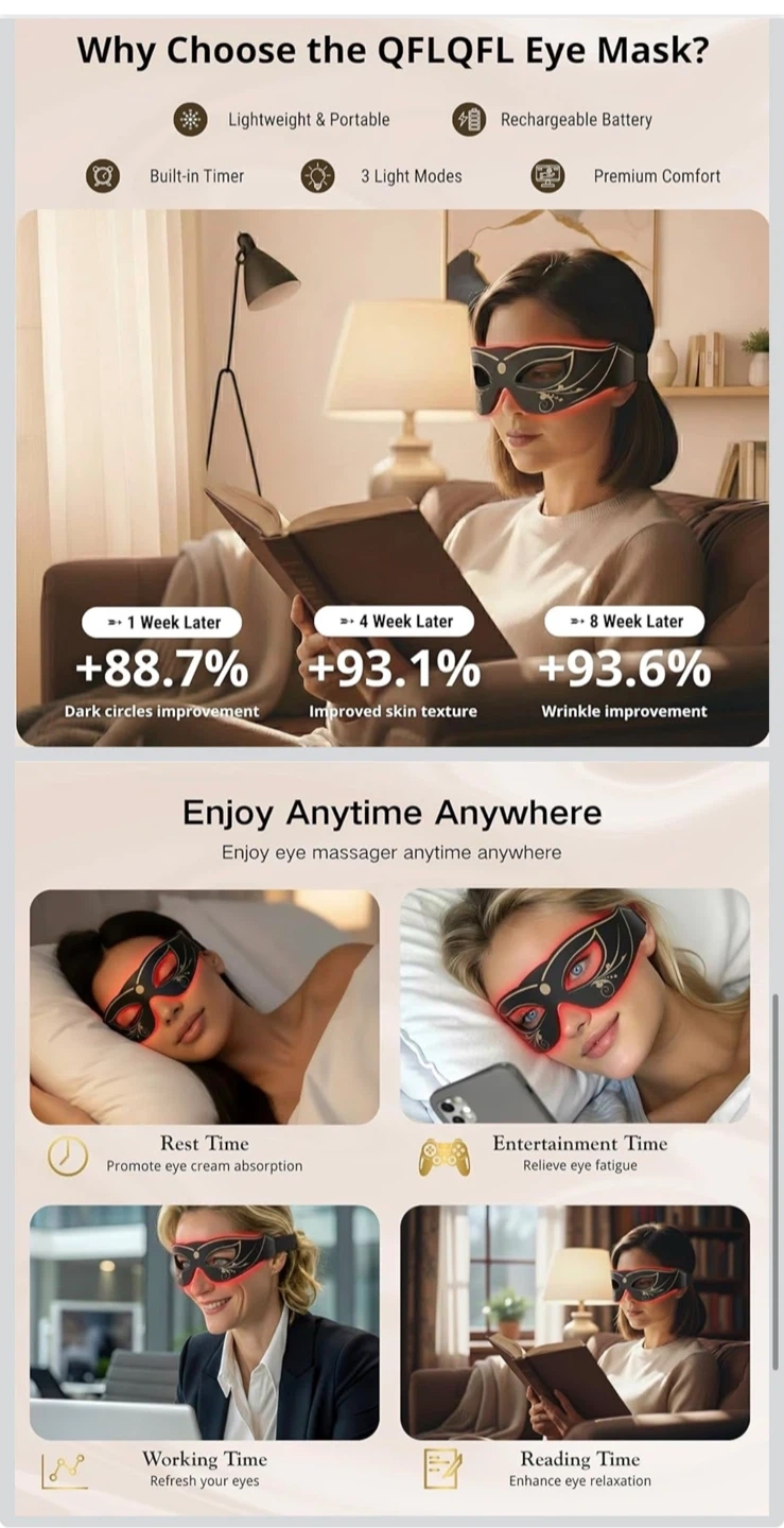 3 Modes Red Light Therapy for Eyes,Under-Eye Red Light Therapy mask Glasses & Light-Based Mask for Treatment of Periorbital Wrinkles,Relieving Eye Fatigue,LED Eye mask EY-20R