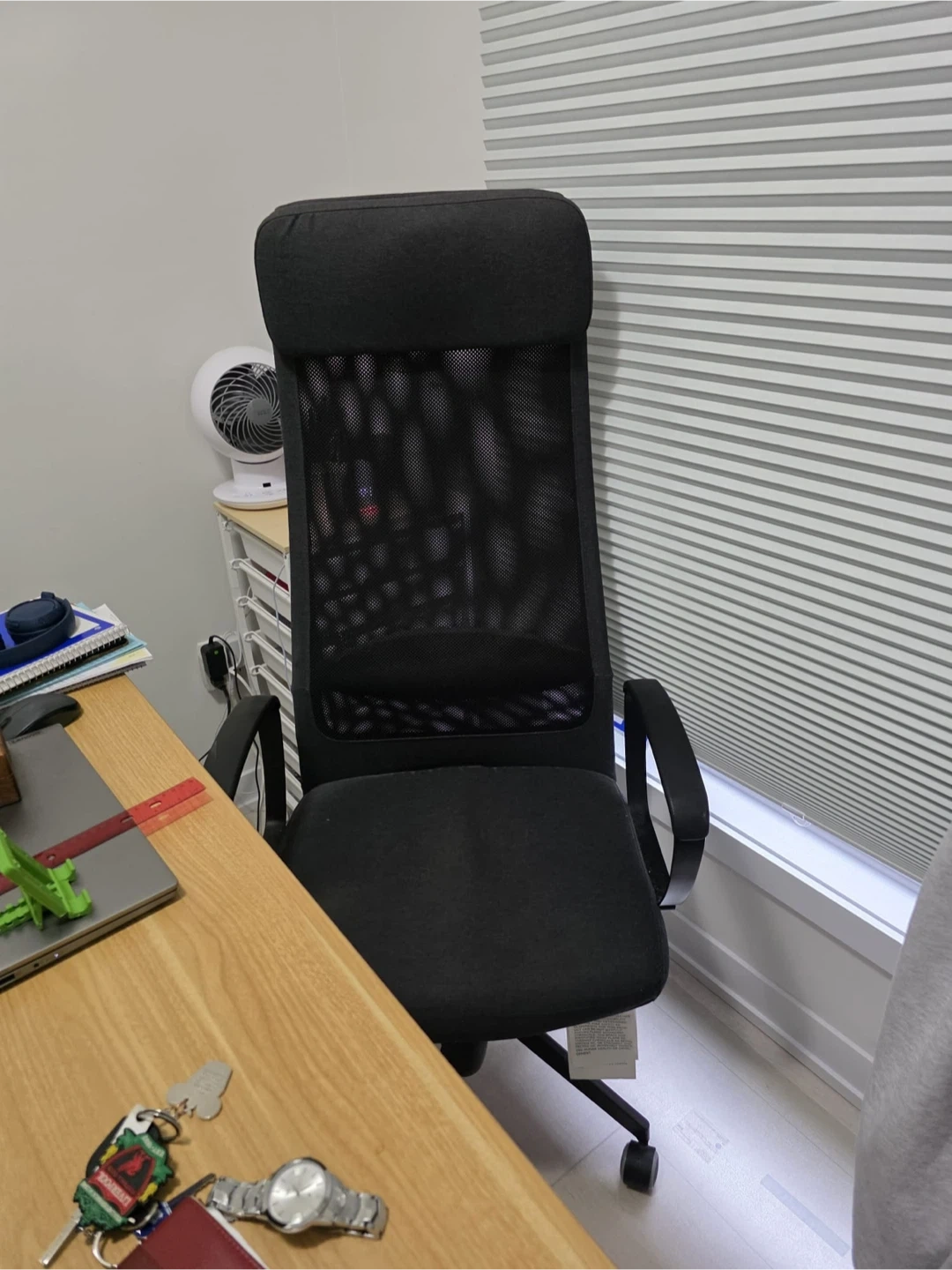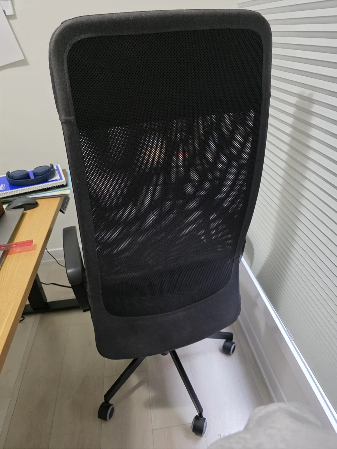 Selling a gently used IKEA Markus office chair in black. It's super comfy for long work sessions or gaming! The mesh back keeps you cool, and it's in great shape. Ready for a new workspace