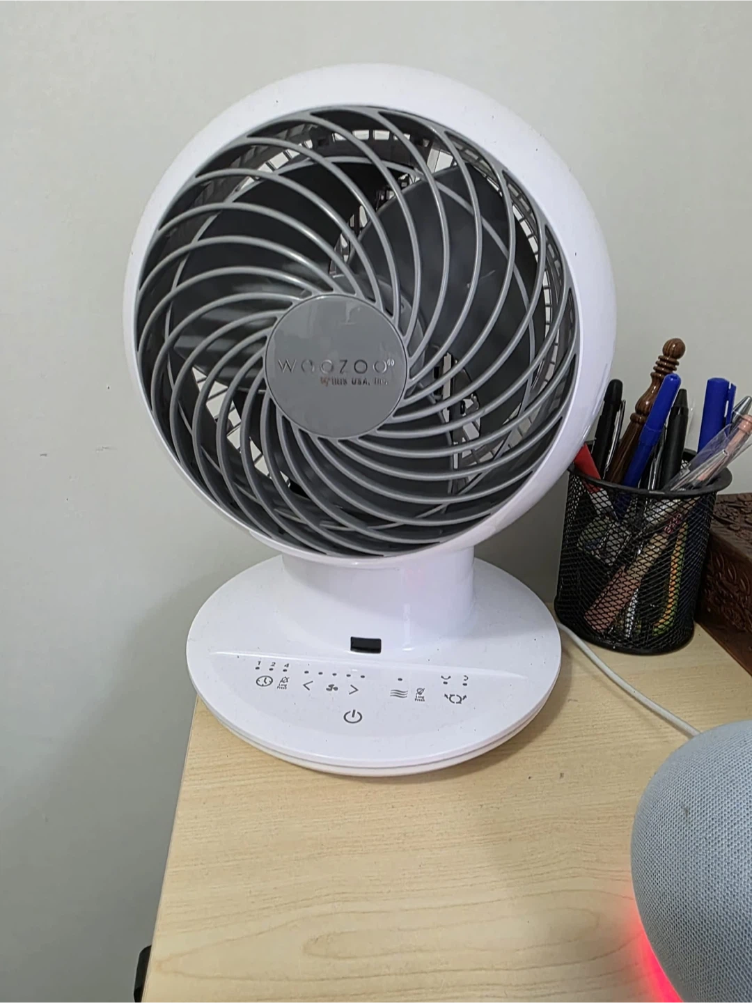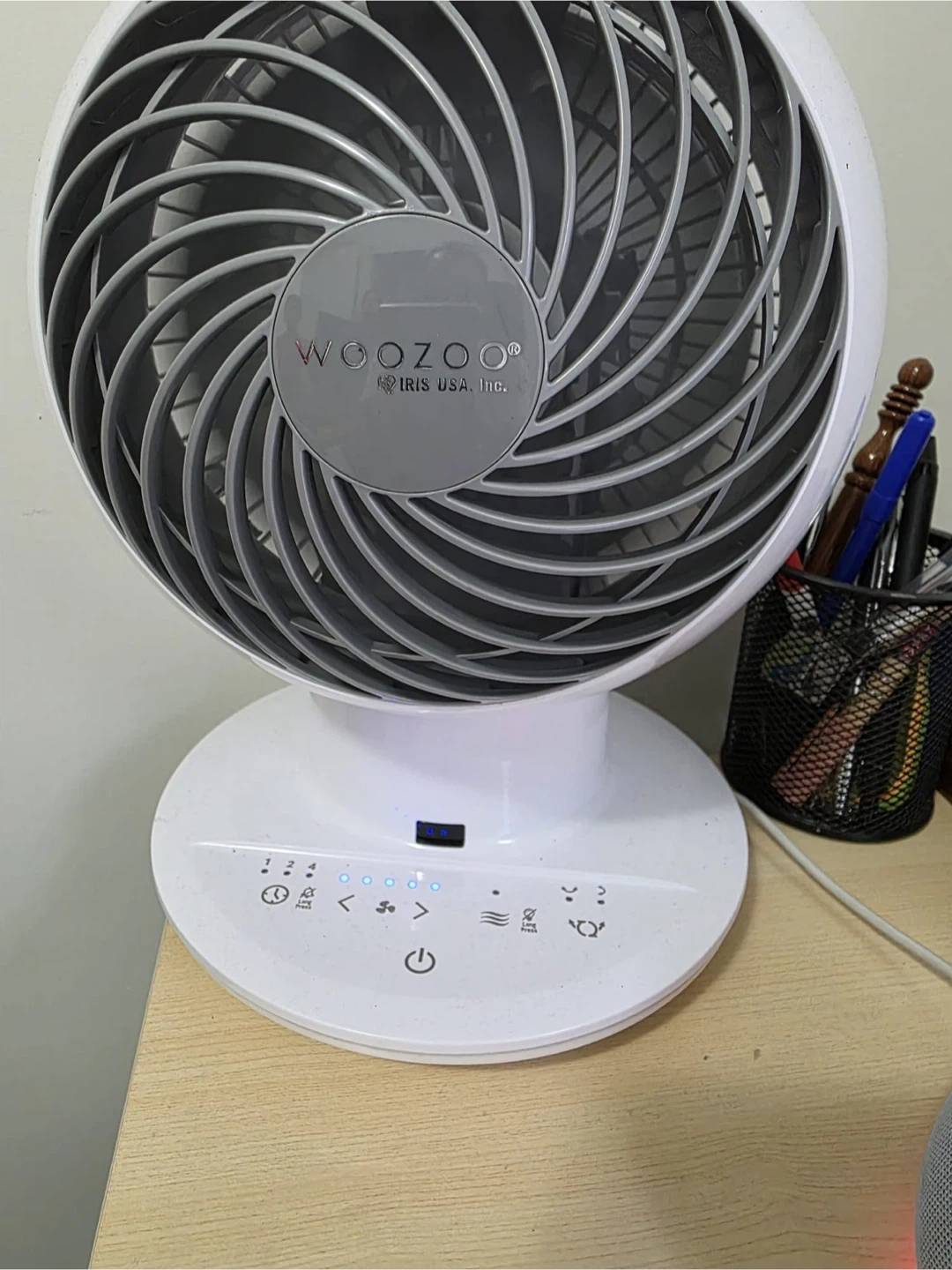 Selling a WOOZOO Iris USA circulator fan, model PCF-SC15T-CT. It's in good condition and comes with a remote control still in its original packaging. Great for circulating air in your home!