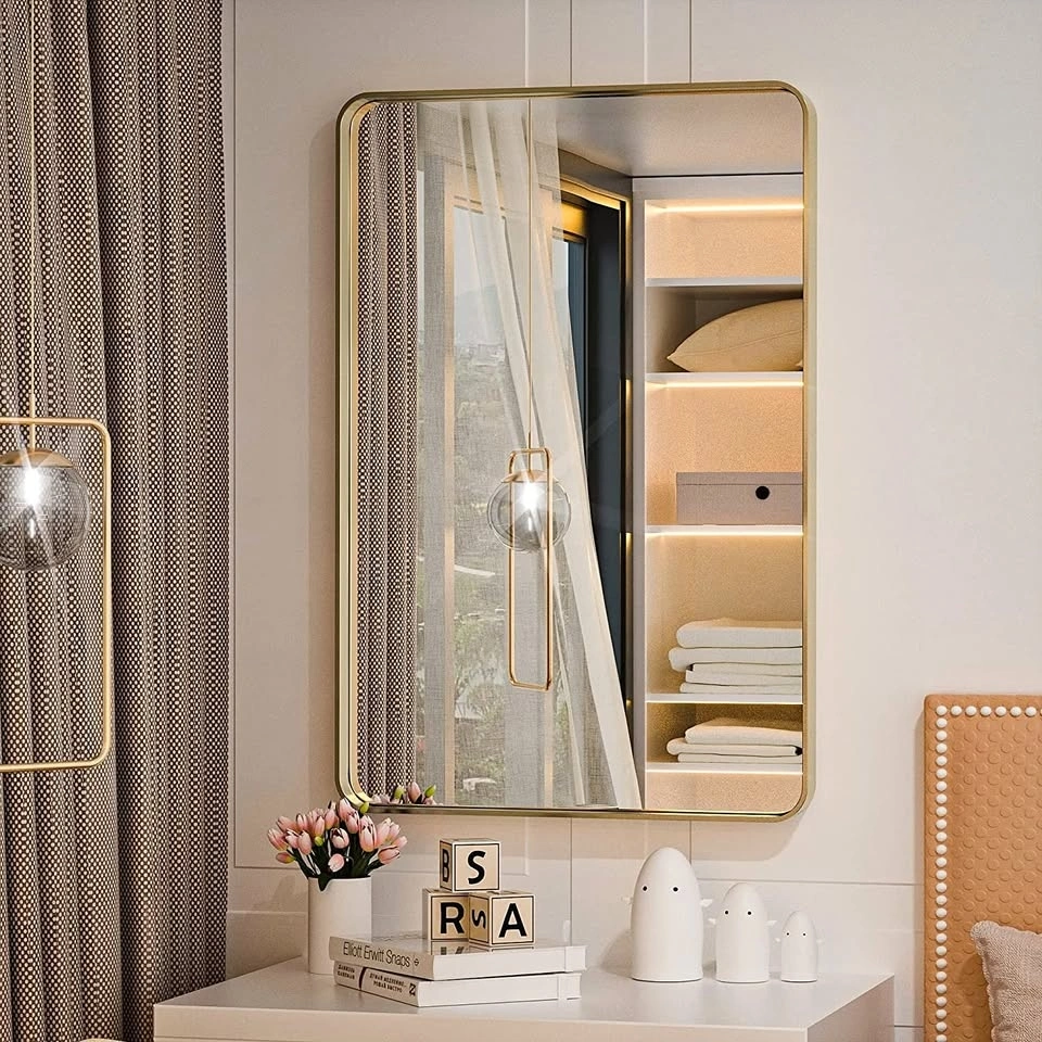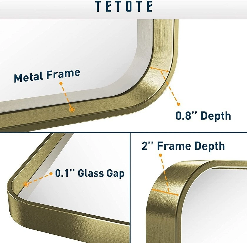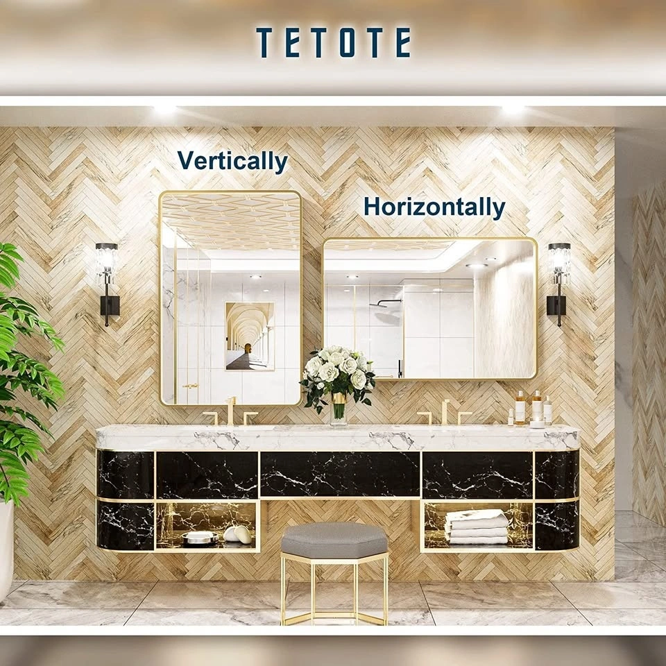 TETOTE 24 x 36 Inch Vanity Mirror, Bronze Trimmed Wall Mounted Rectangle Modern Farmhouse Decorative Metal Framed Mirror for Bathroom (Horizontal/Vertical)